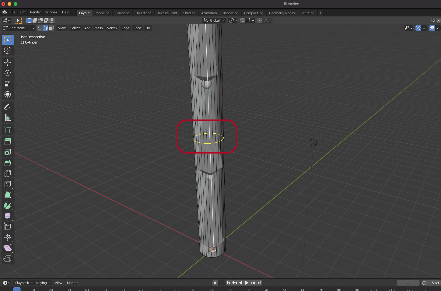 Cylinder를 선택하고 Edit Mode로 들어가서 Edge를 하나 선택하고