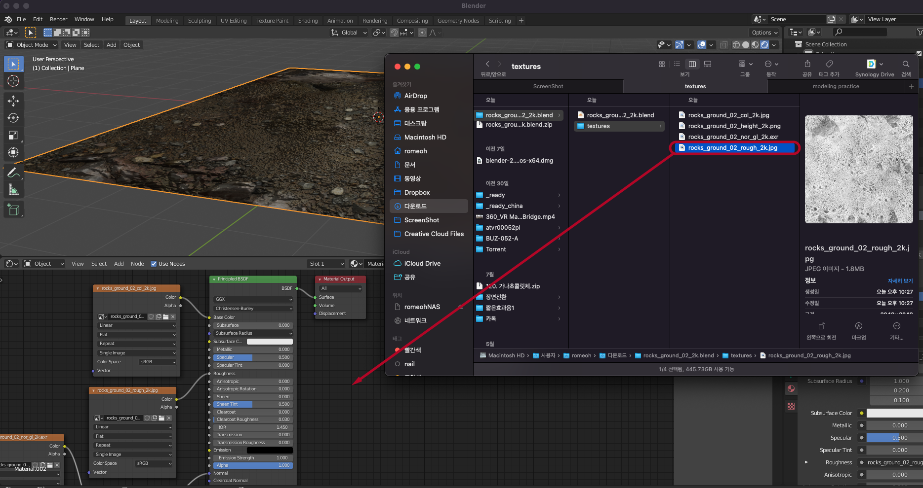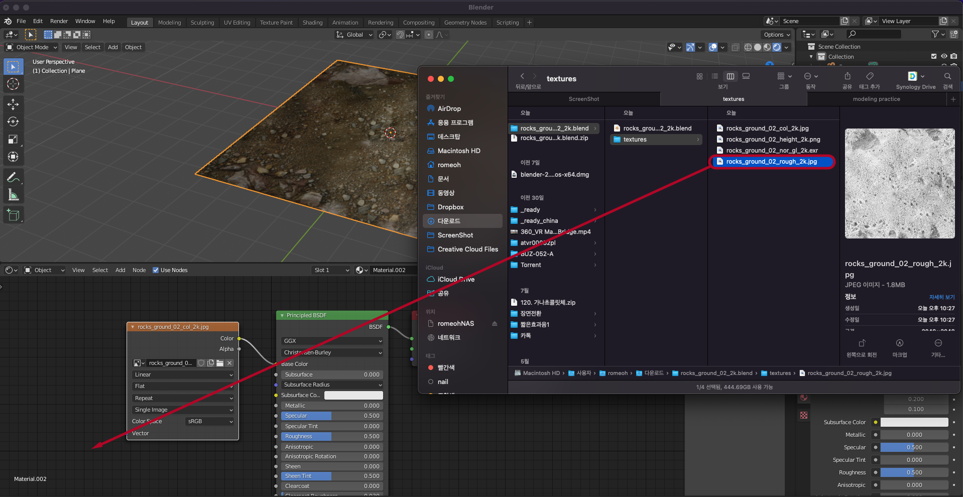 _nor_gl.exr을 드래그 해서 normal map을 추가합니다.