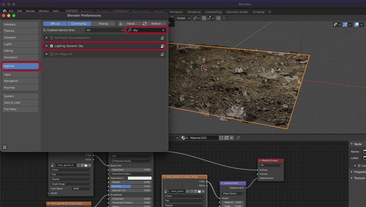 Add-ons 에서 Dynamic Sky를 체크 합니다.
