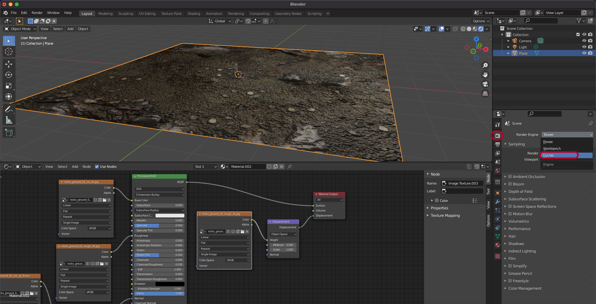 Render Properties에서 Render Engine을 Cycles로 변경합니다.