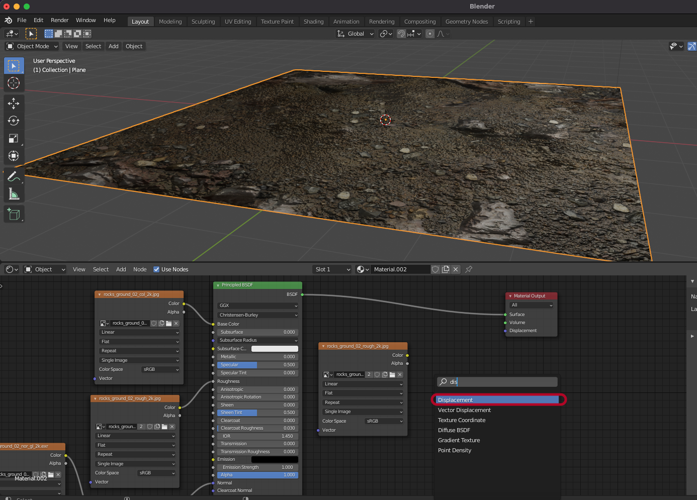 Shift + A를 눌러서 Displacement를 추가합니다.