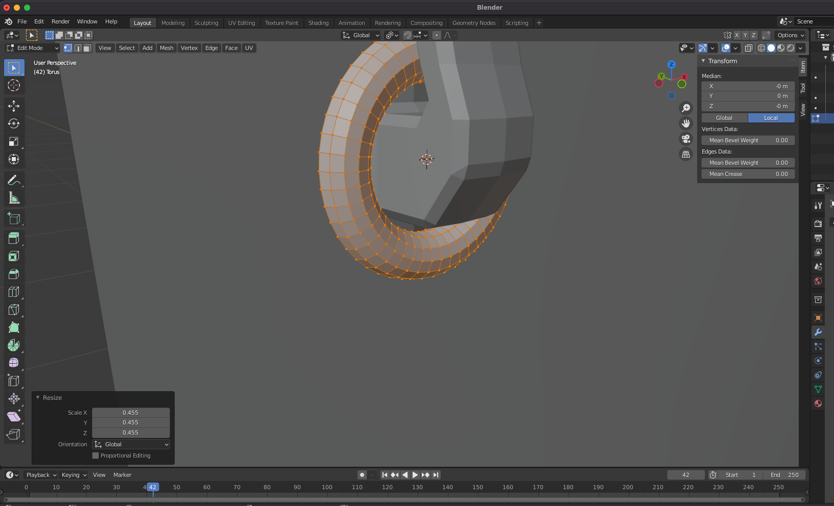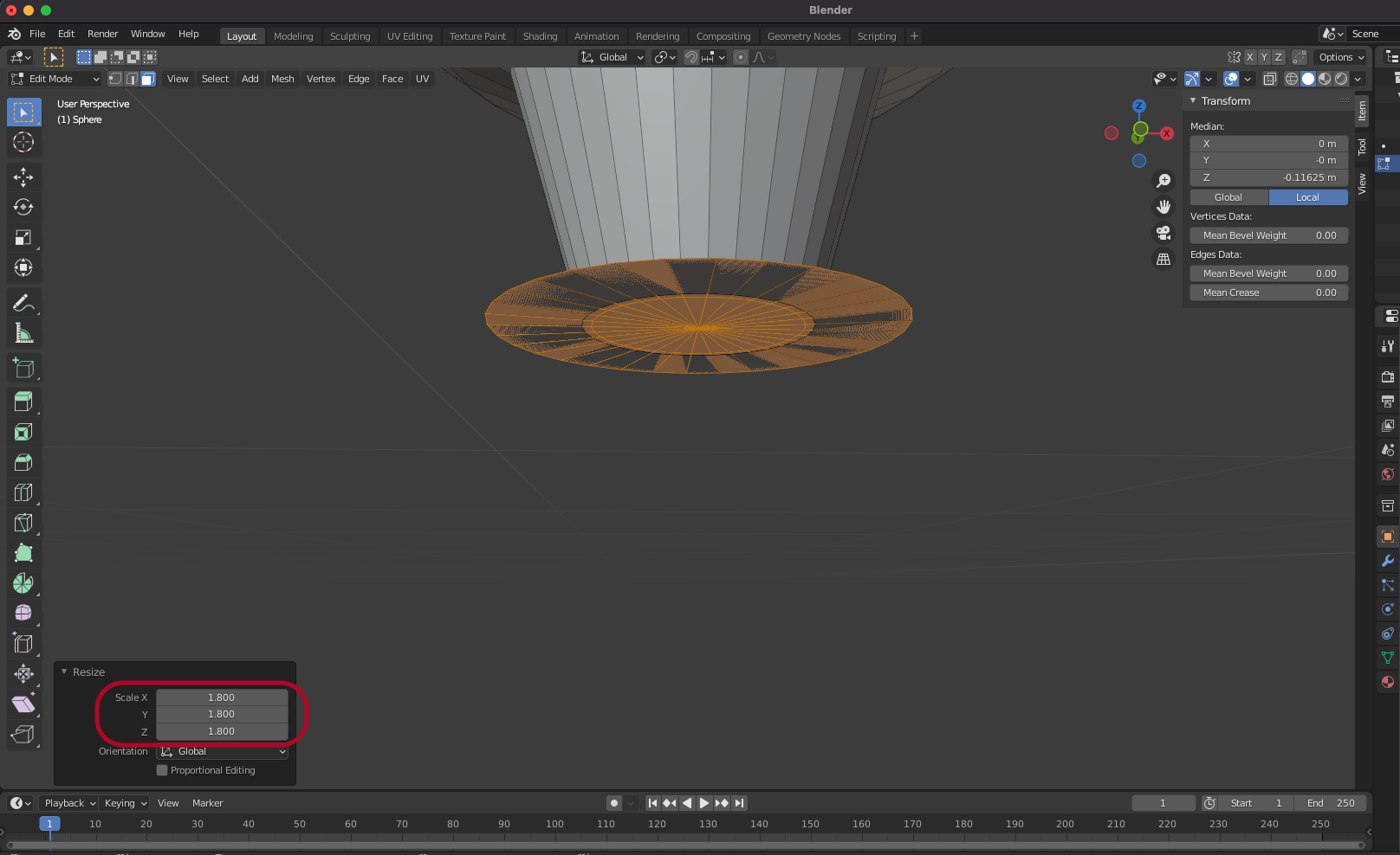 control + A를 누르고 Scale을 재설정합니다.