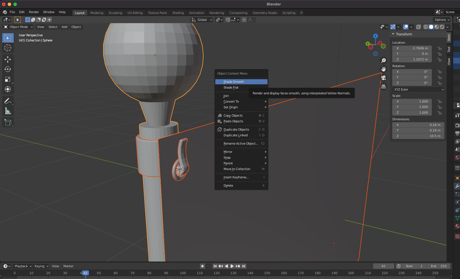 모델링한 object를 선택하고 shade smooth 합니다.