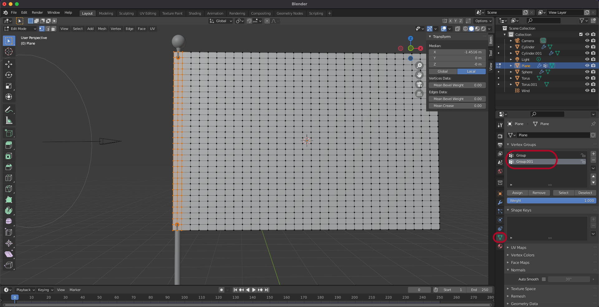 Object Data Properties에서 새로운 vertex Group이 만들어 졌습니다.