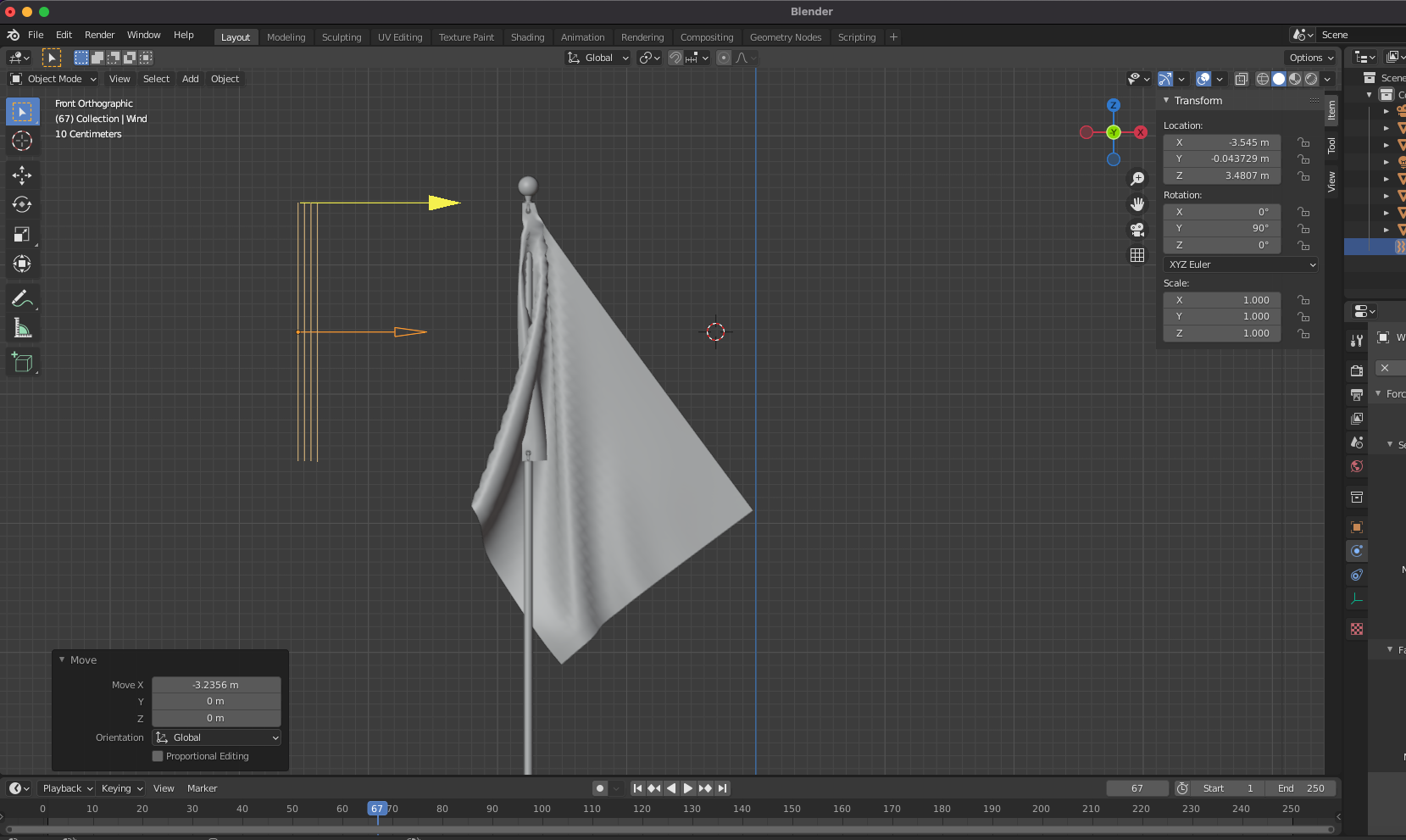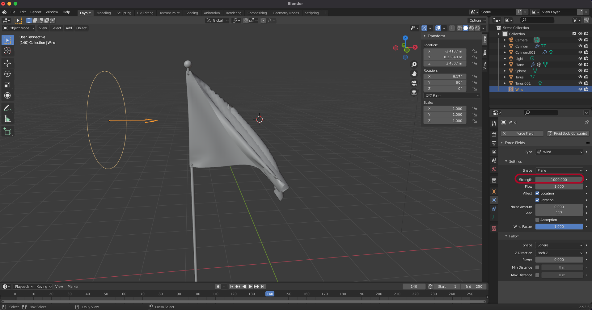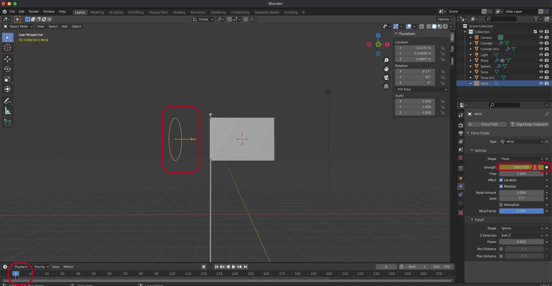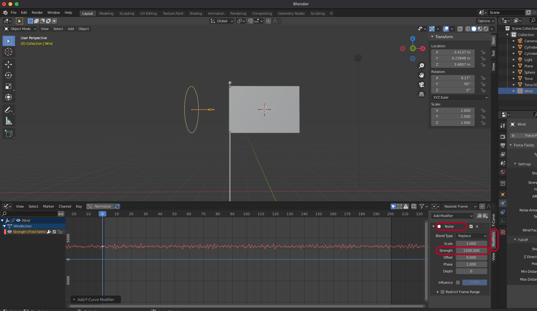 Force Field > Wind를 추가합니다.