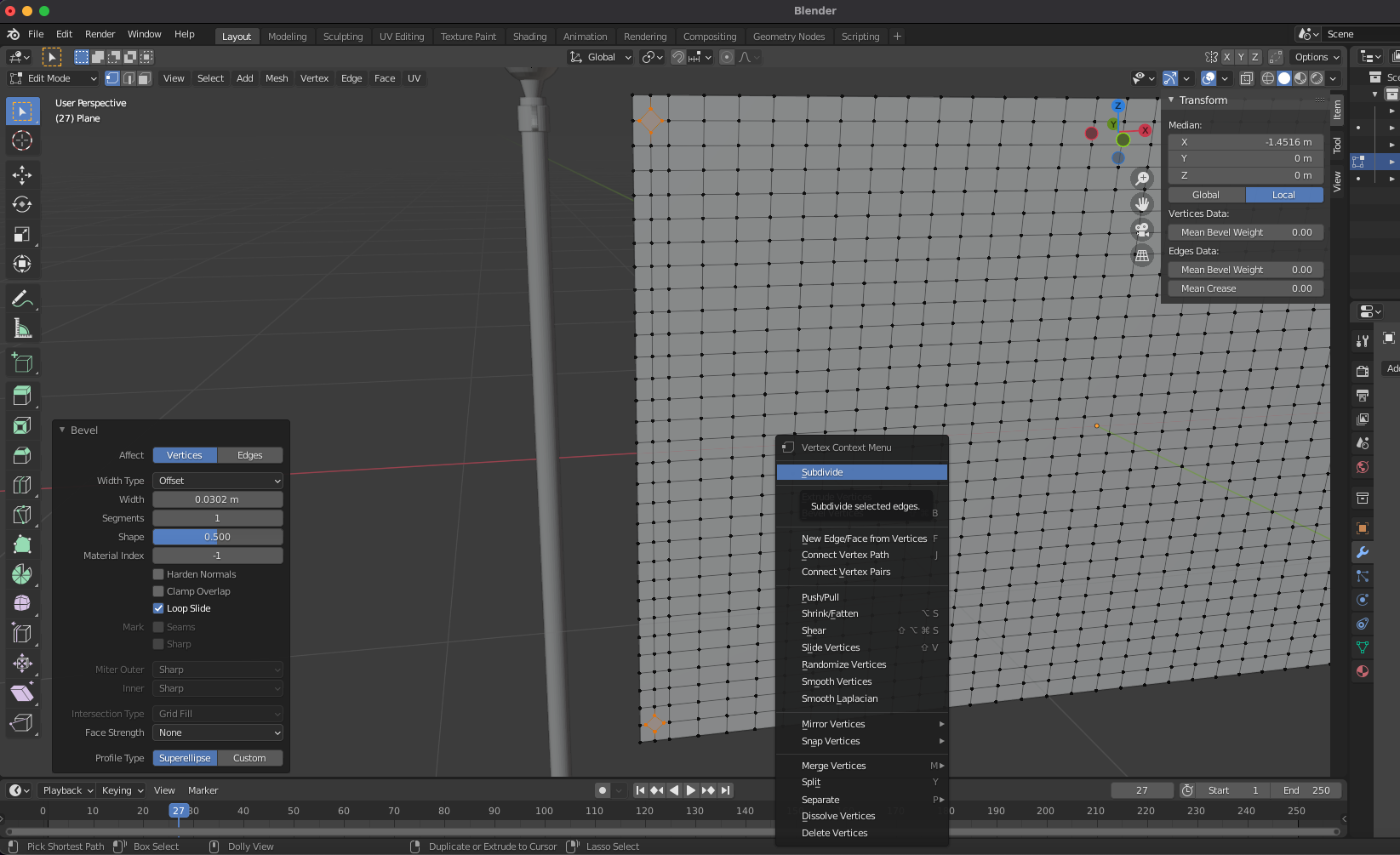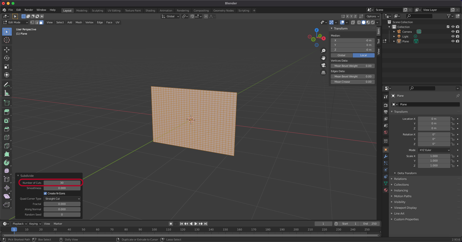 subdivide 30개로 면을 나누어 줍니다.