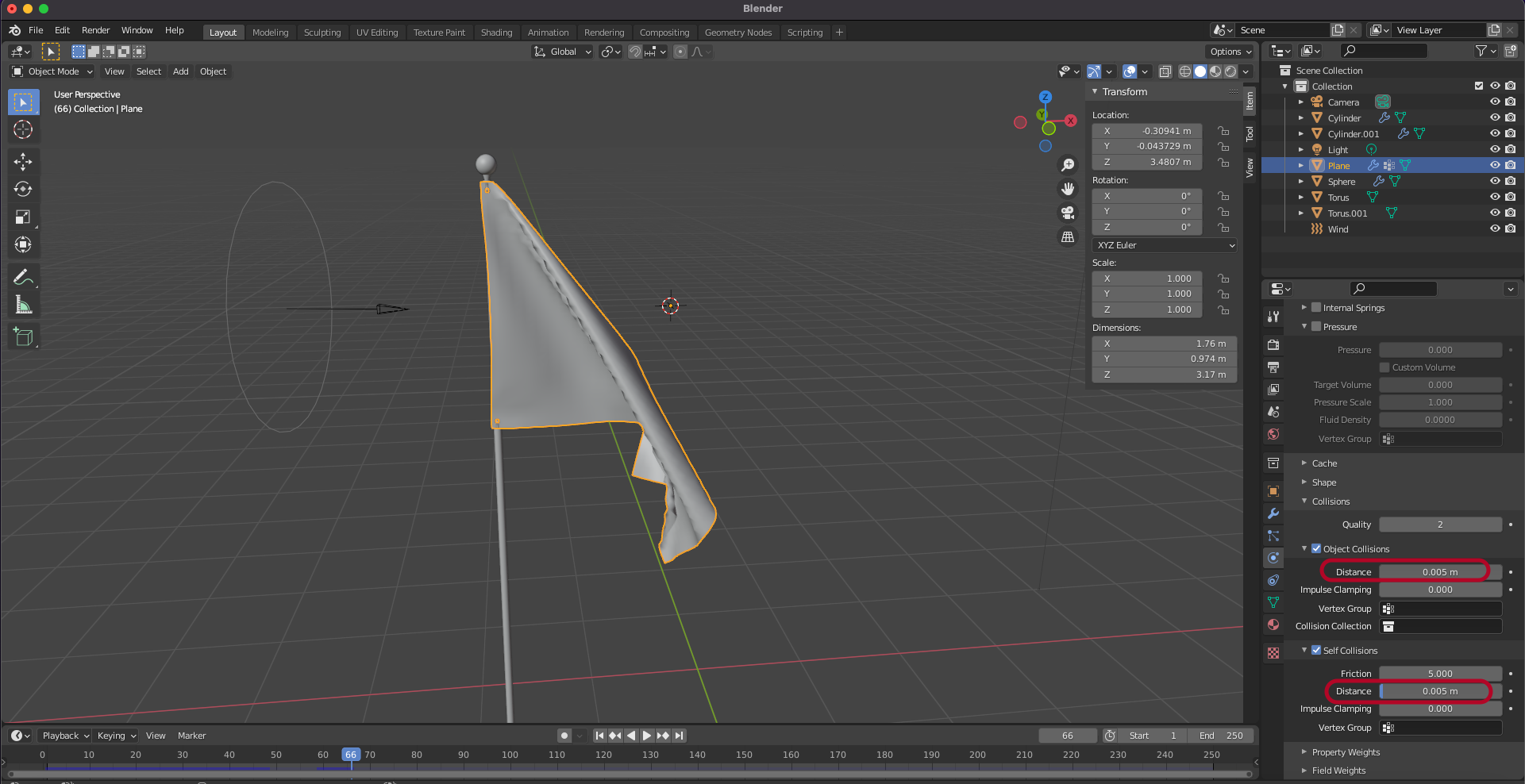 Object Collision > distance: 0.005