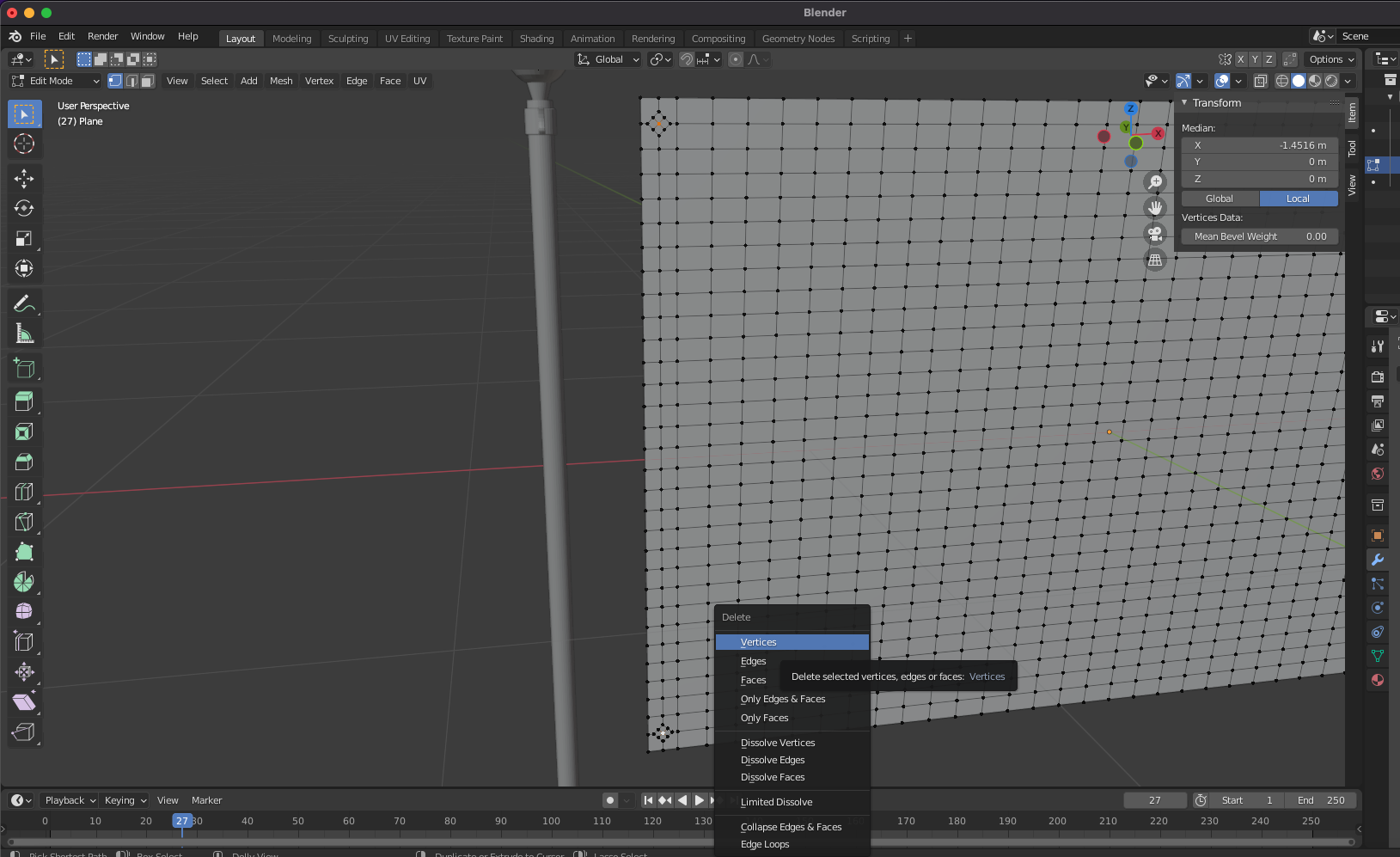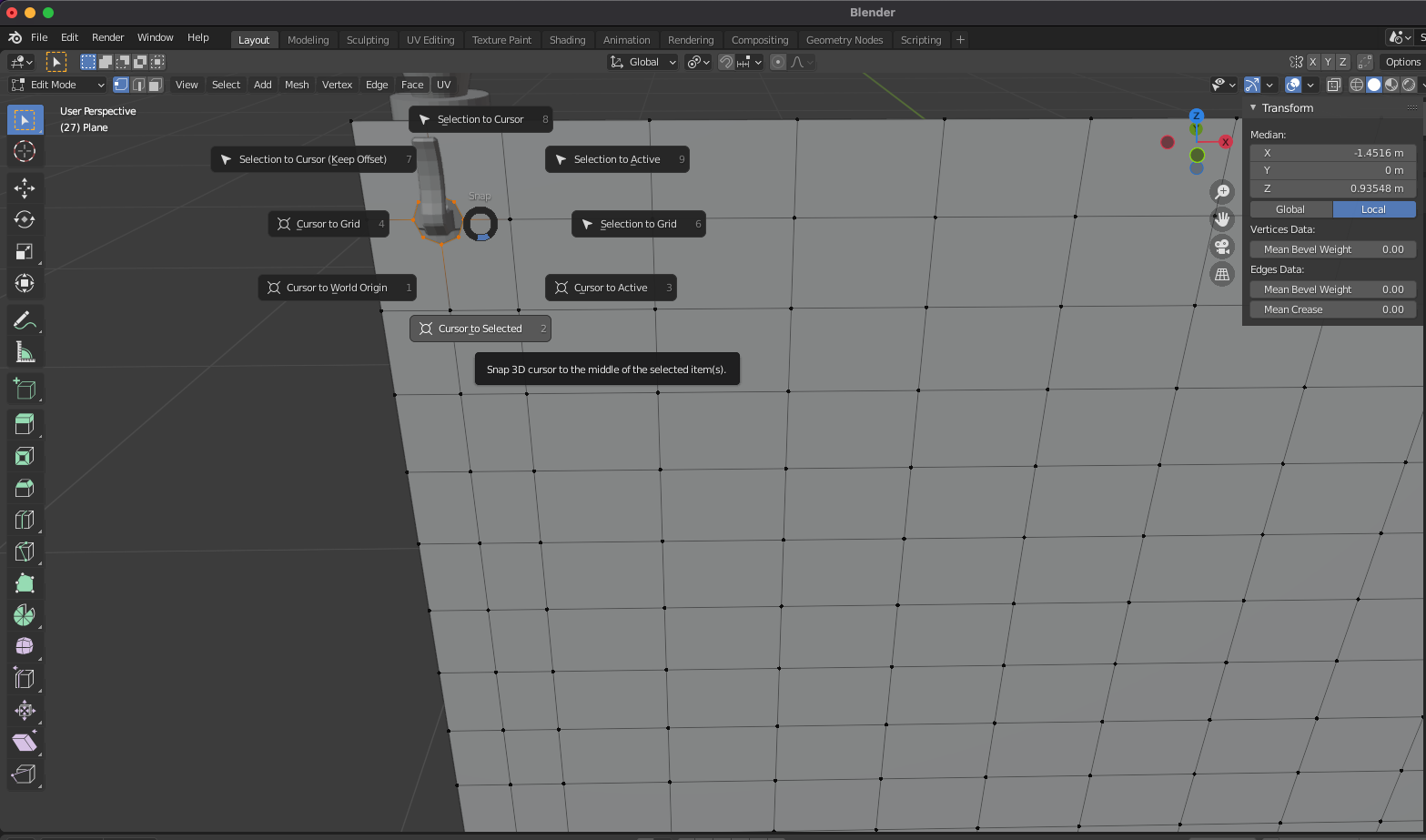 구멍 주변의 vertex를 선택하고