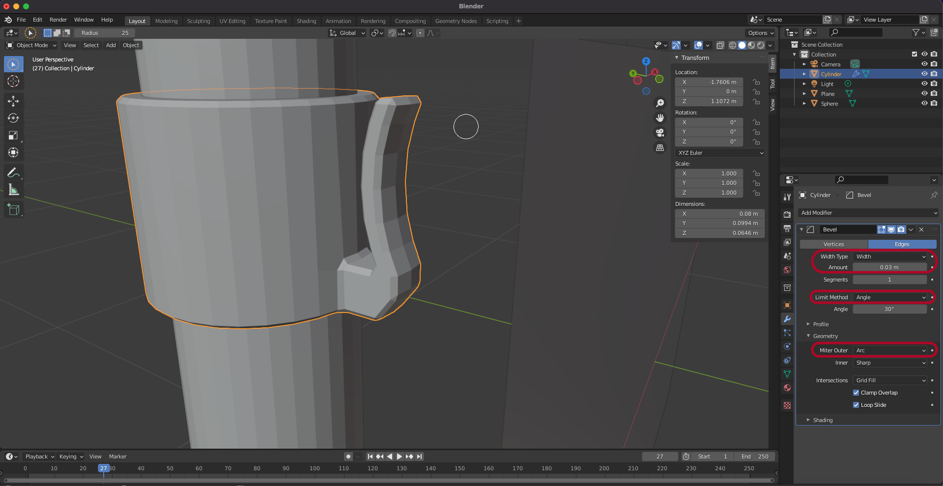 Bevel을 추가합니다.