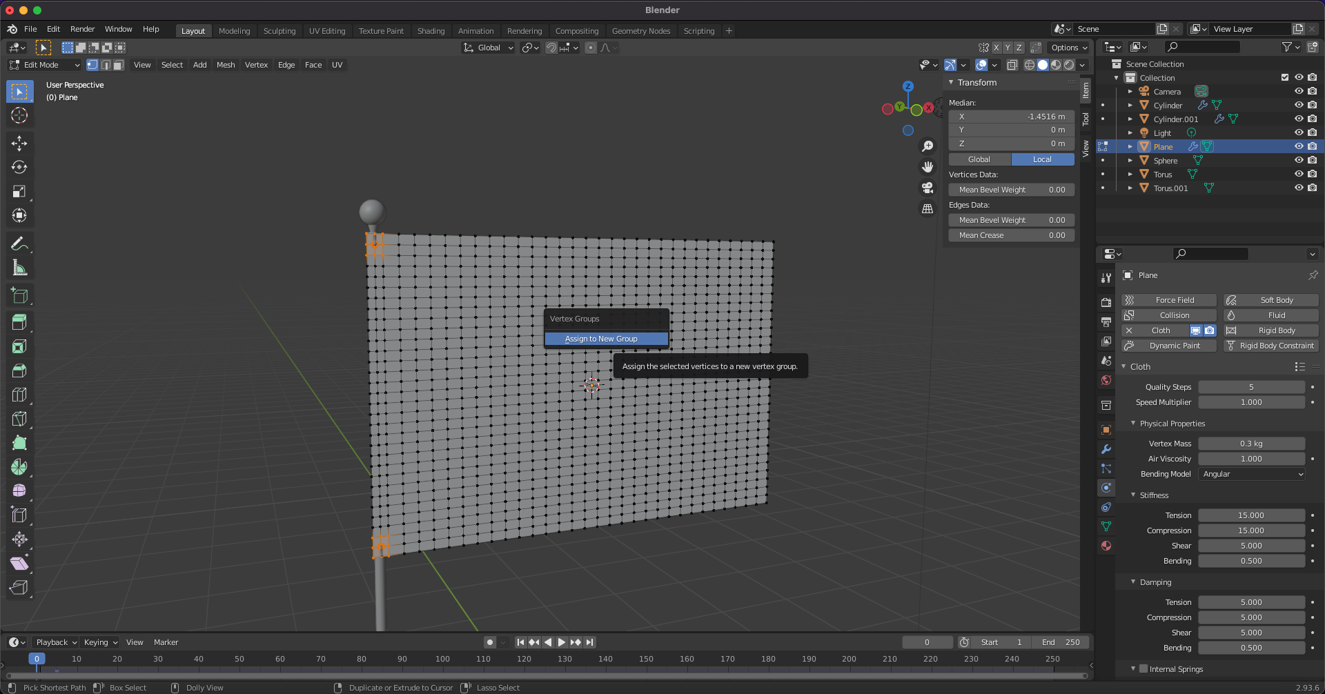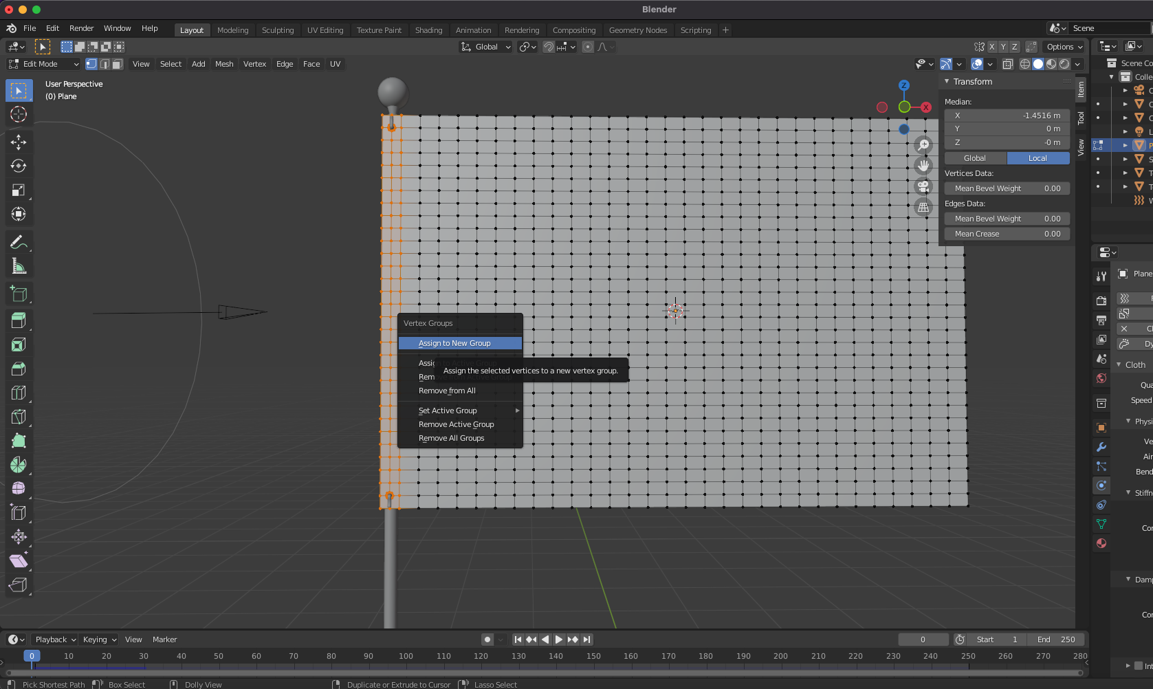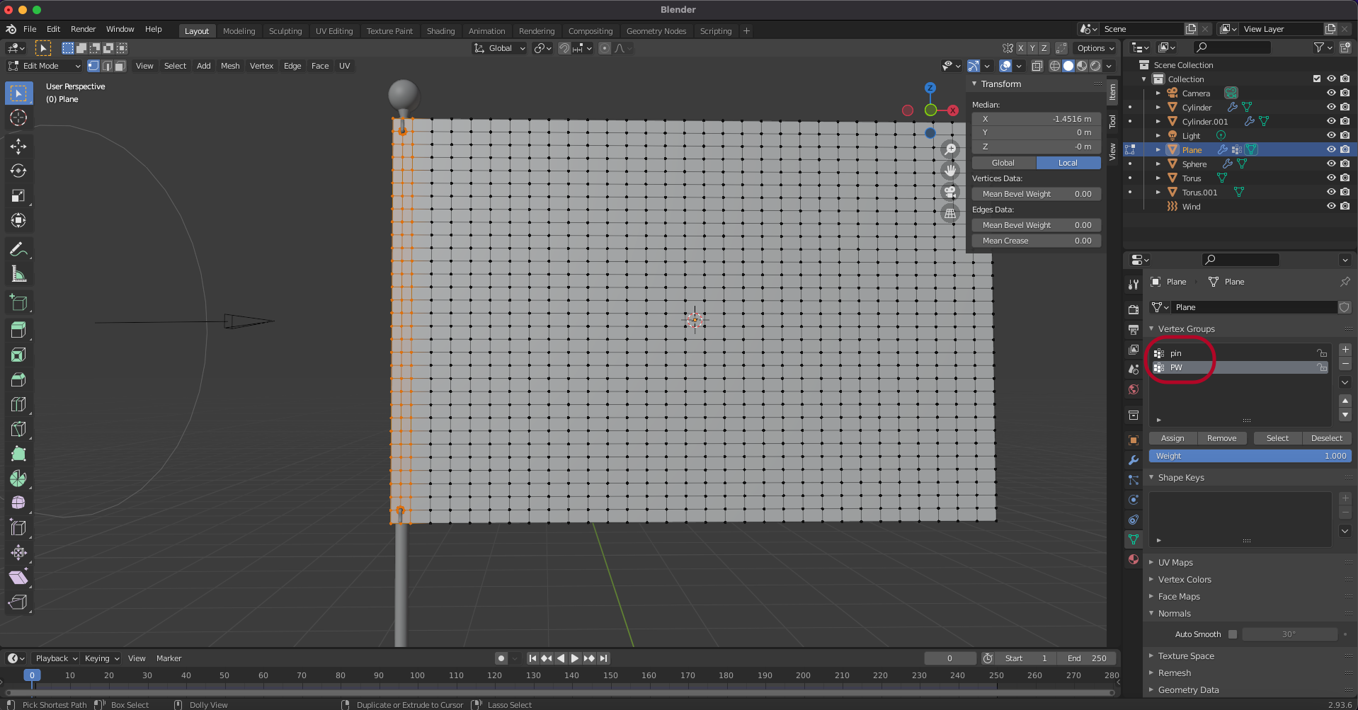 Shape > Pin Group에서 방금 만든 vertex group을 선택합니다.