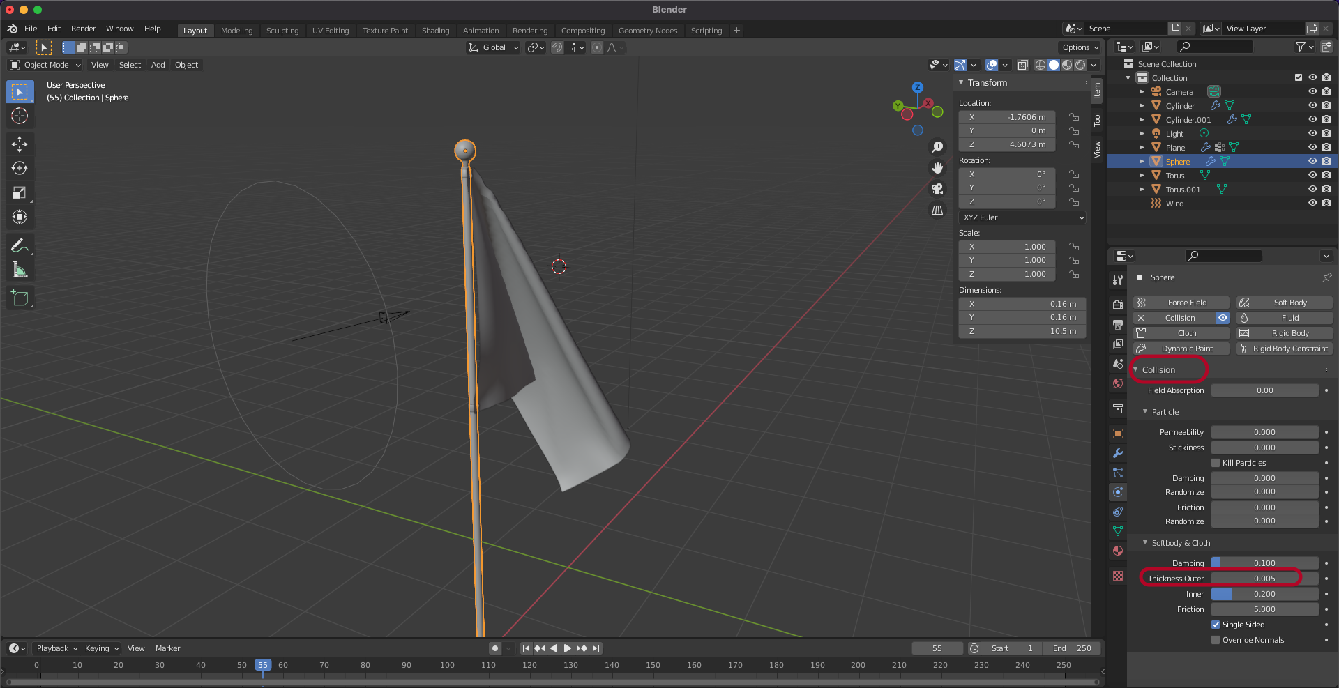 thickness outer는 0.005로 설정합니다.