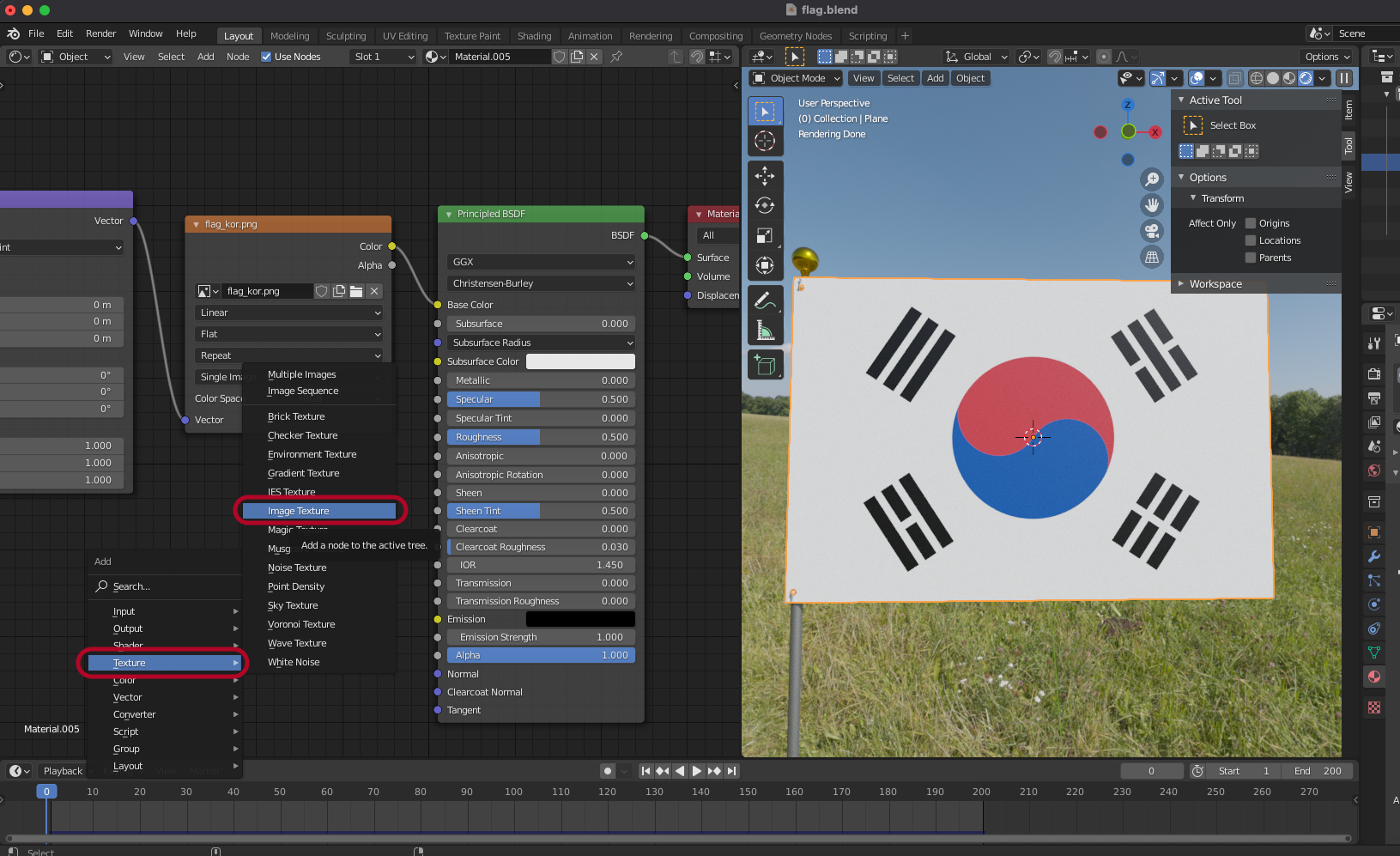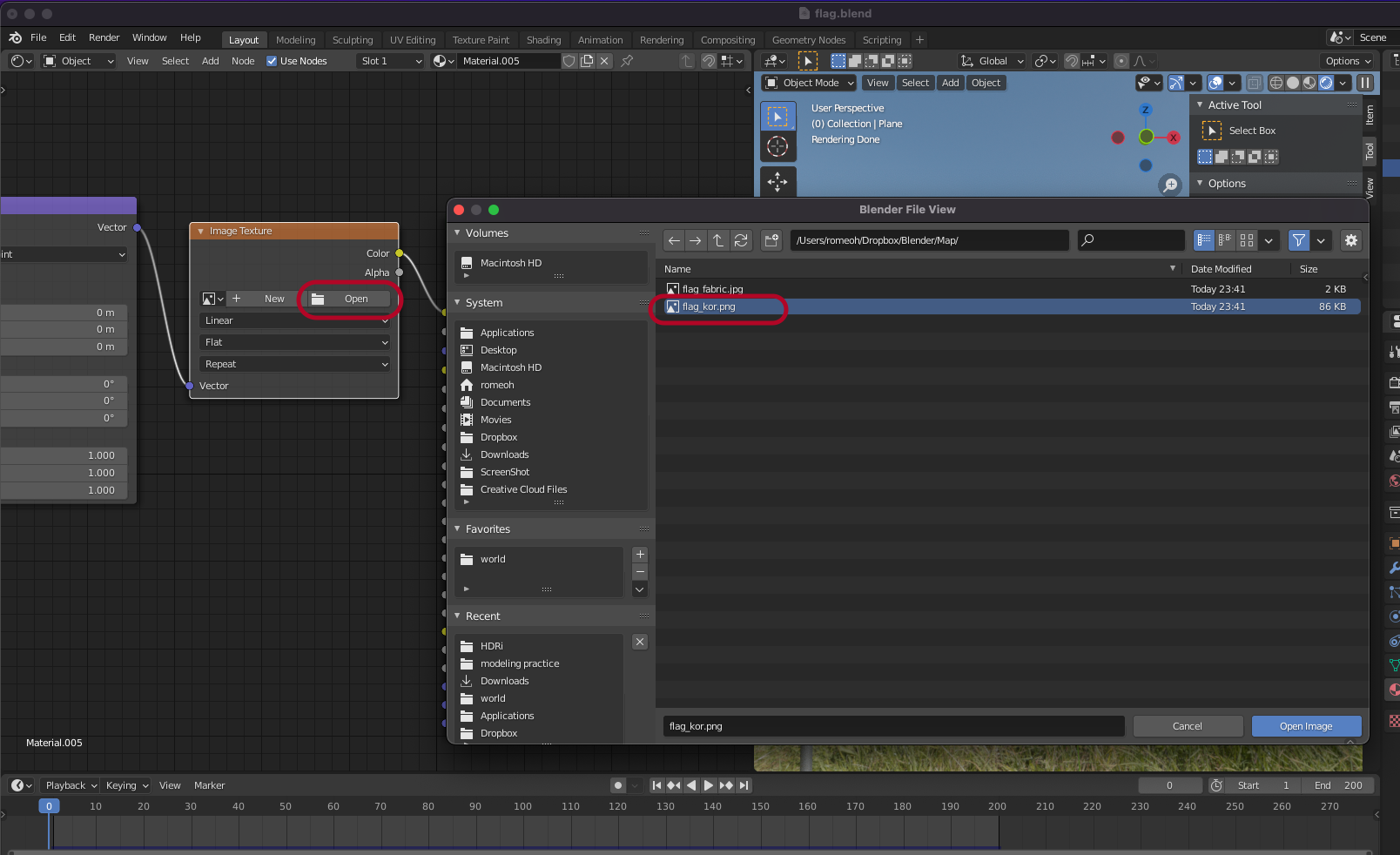 Image Texture > Open 해서 태극기 이미지를 선택합니다.