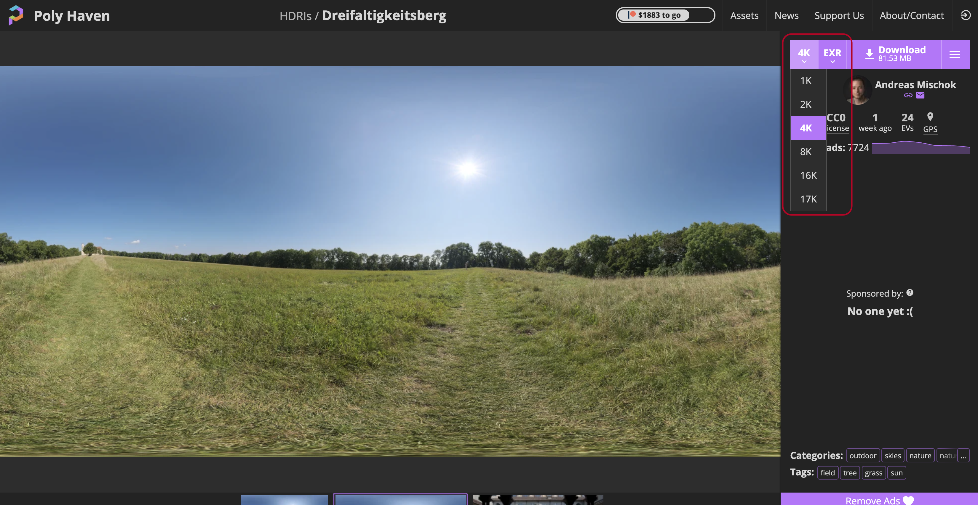Environment Texture > Open을 누르고 다운로드한 HDRi 파일을 선택합니다.