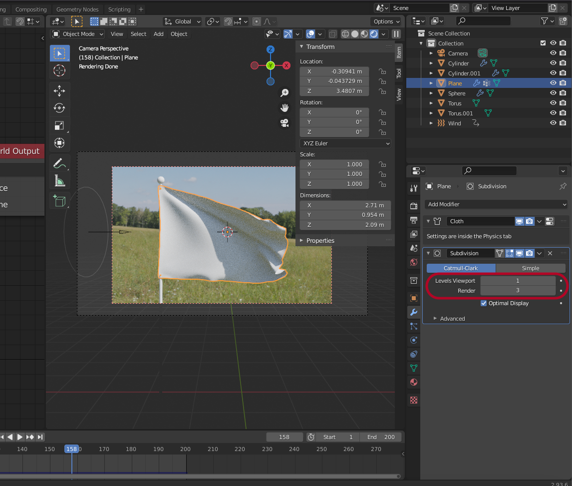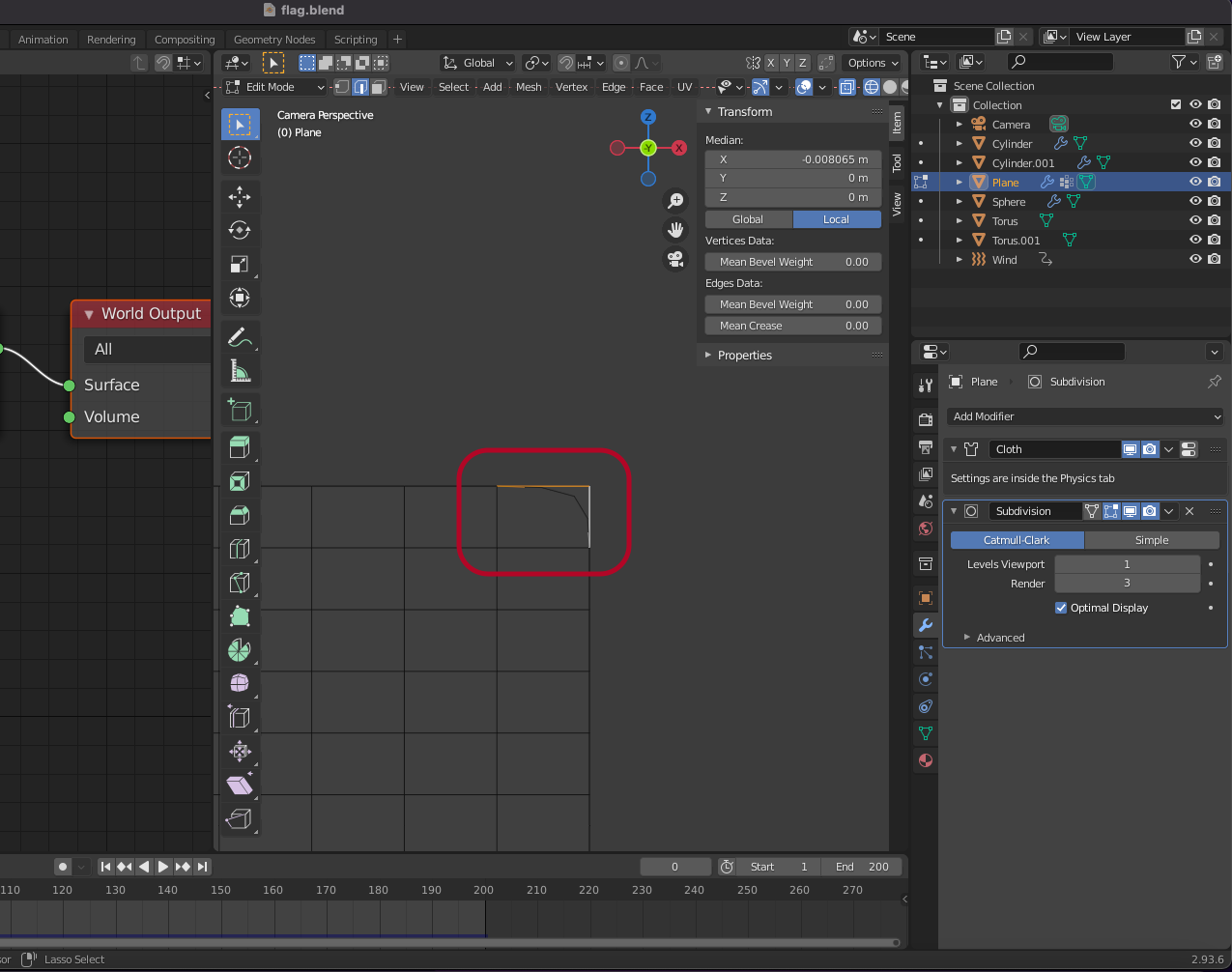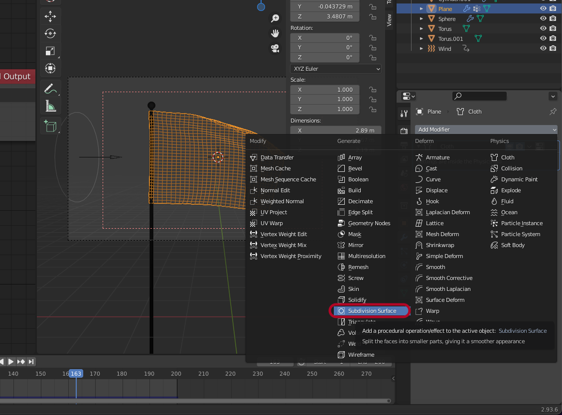 깃발을 선택하고 subdivision Surface를 적용합니다.