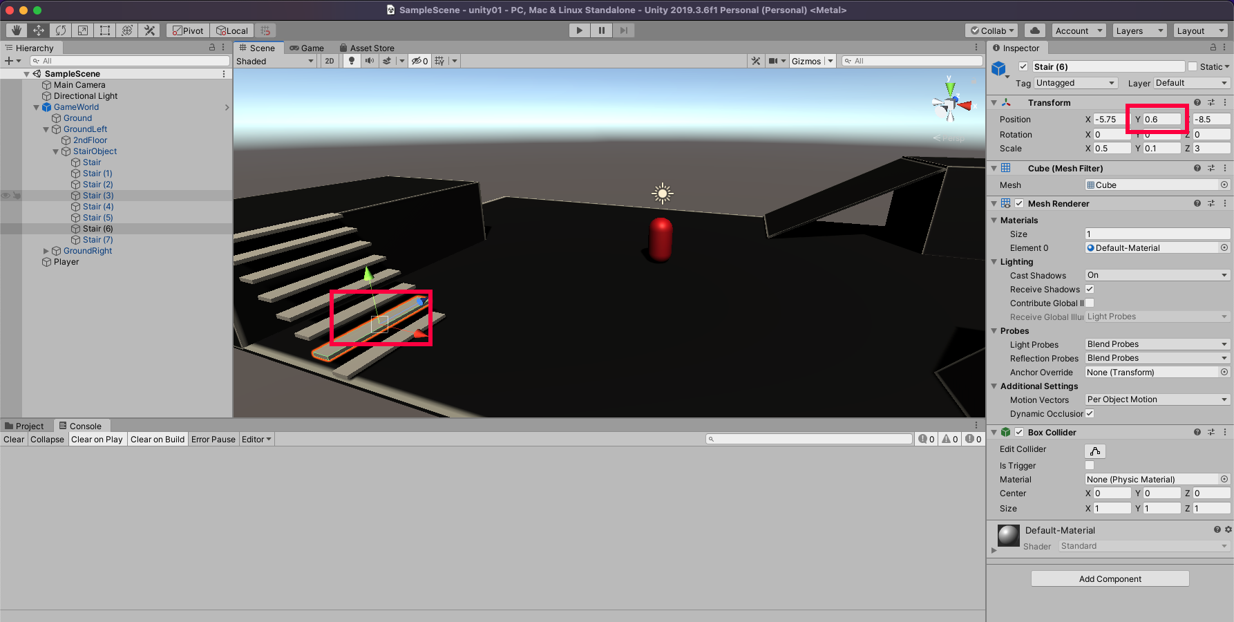 Camera Position을 reset하고 Y를 0.6으로 설정합니다.