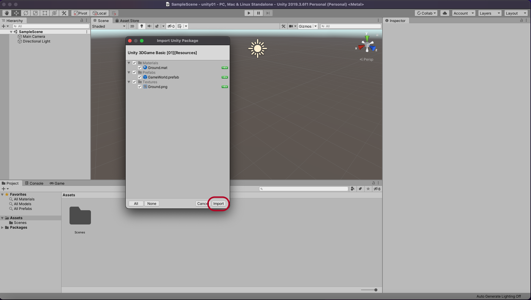 Gameworld를 Import 합니다.