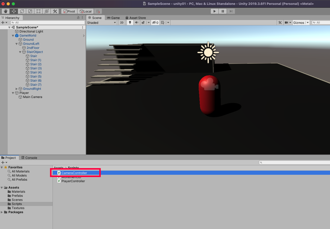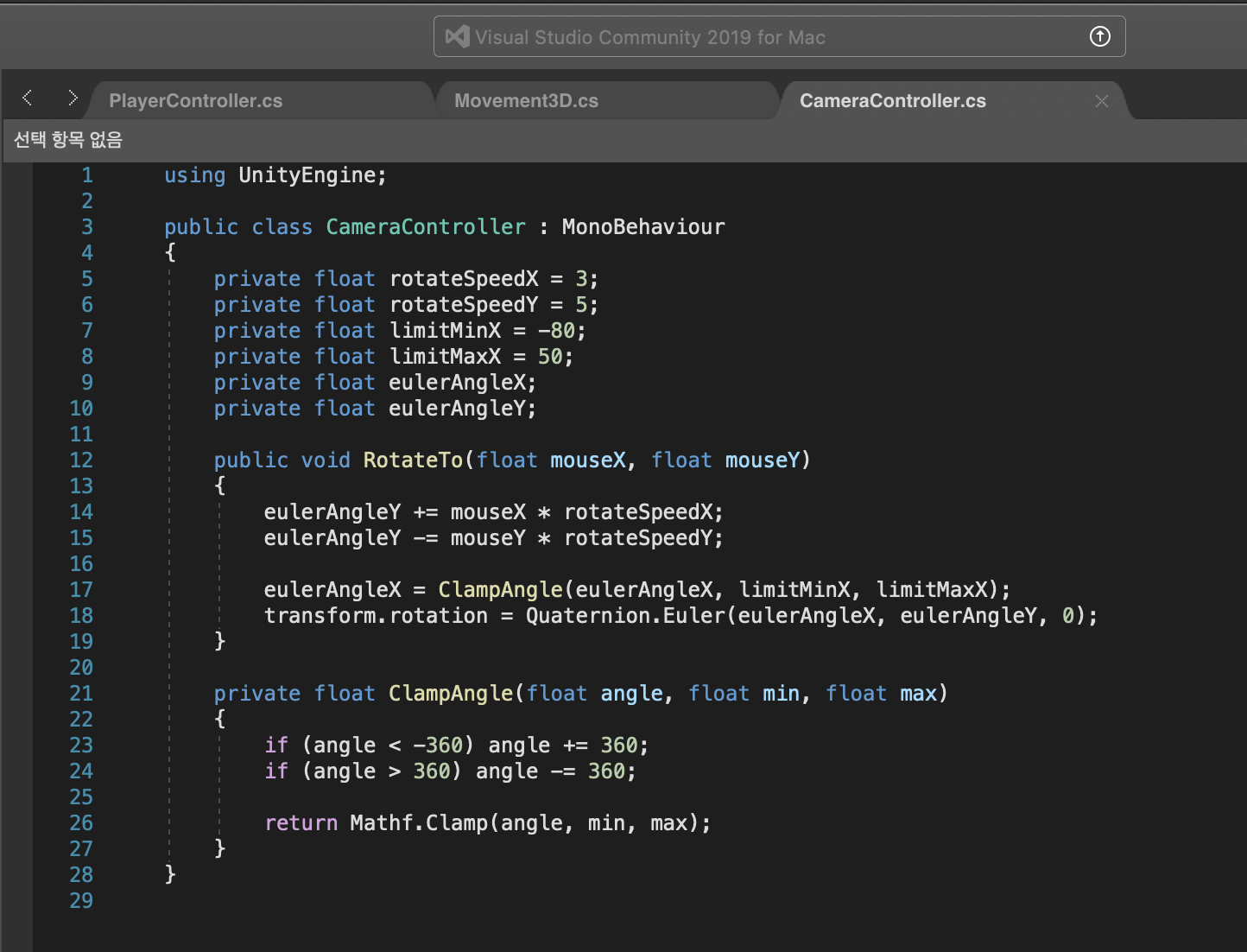 MainCamera를 선택하고 CameraController 스크립트를 넣어줍니다.