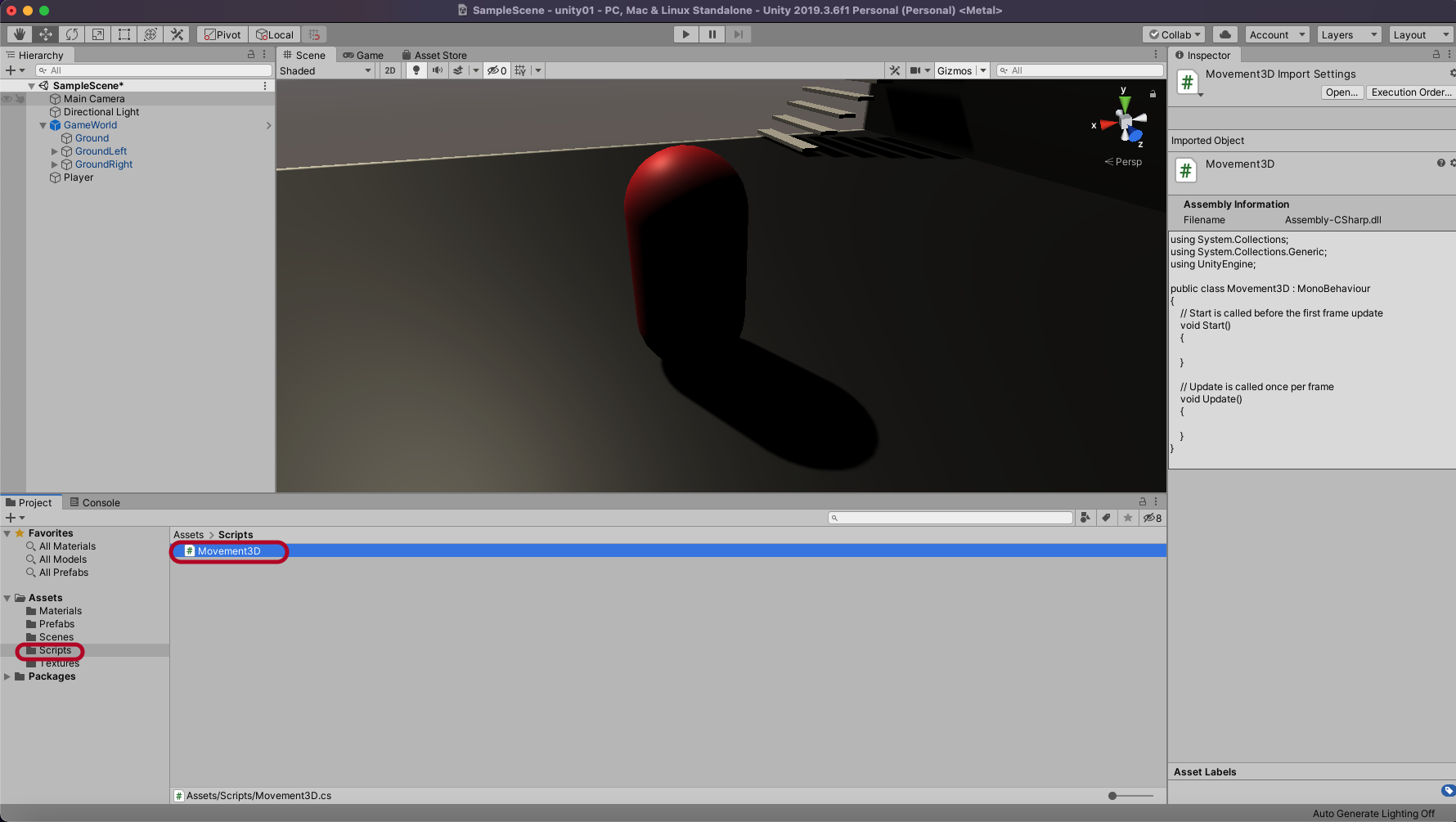 Movement3D 스크립트를 생성합니다.