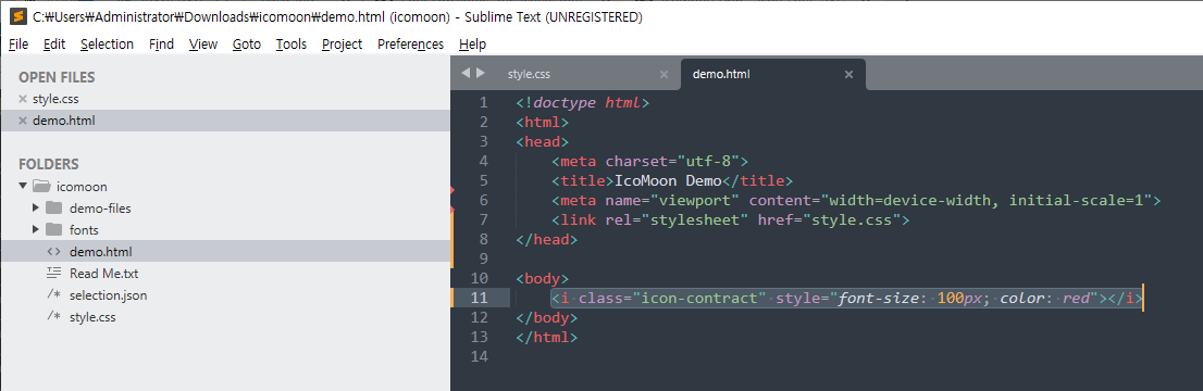 demo.html 파일을 열어서 코드를 변경해 봅니다.