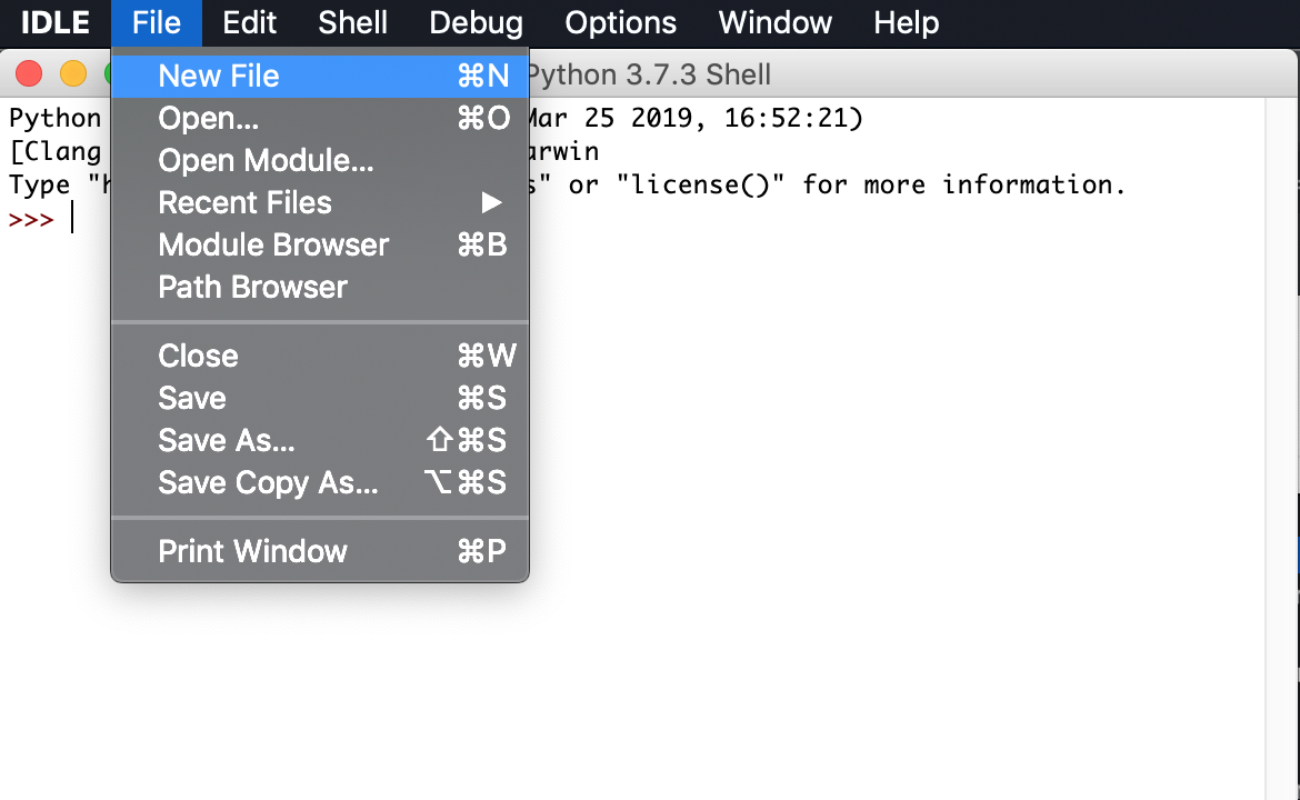응용프로그램 > Python 3.7 > IDLE.app 을 실행합니다.
