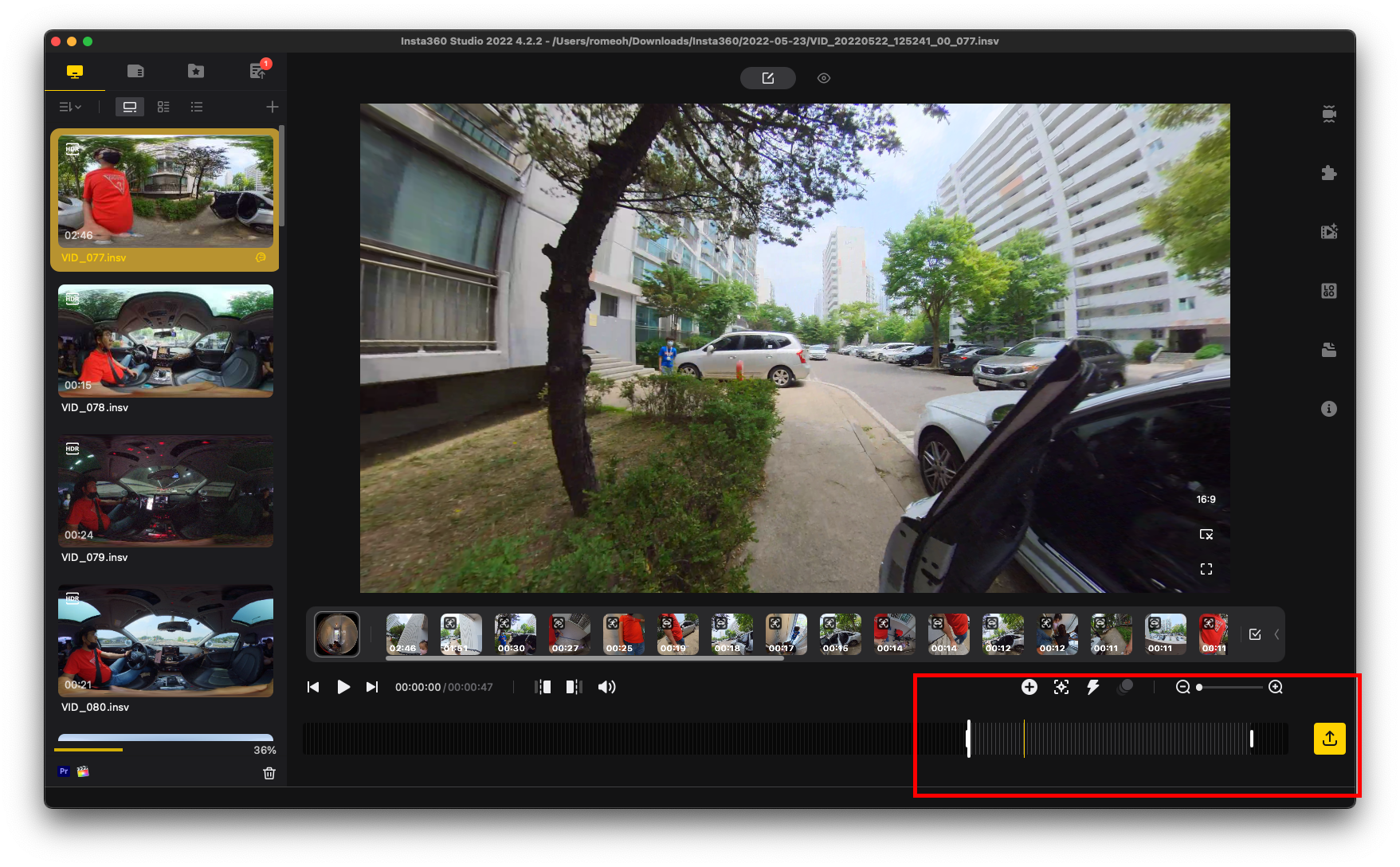Insta360 Studio에서 insv파일을 불러옵니다.