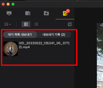 대기 목록에서 전체 내보내기 버튼을 눌러 mp4파일로 저장합니다.