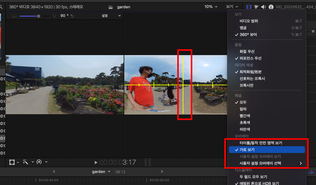 보기 > 360도 영상을 선택하면