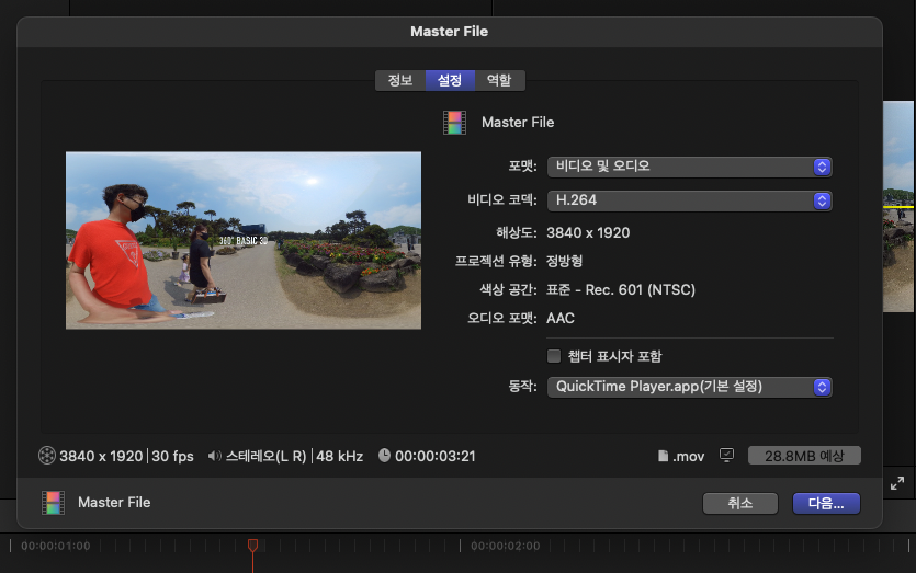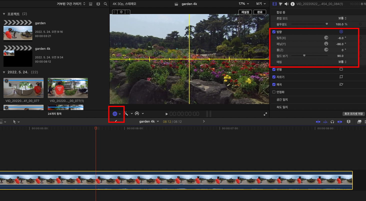 [Final Cut Pro] insta360 파일 편집 - 파노라마 영상 & 일반 영상 본문
