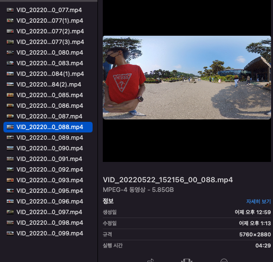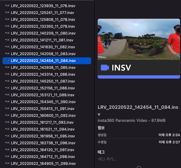 insta 360 파일을 PC로 불러와서 insv 파일을 mp4파일로 변환합니다.