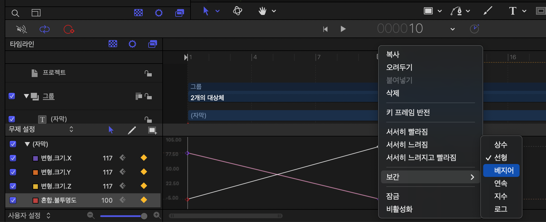 보간 > 베지어를 선택합니다.