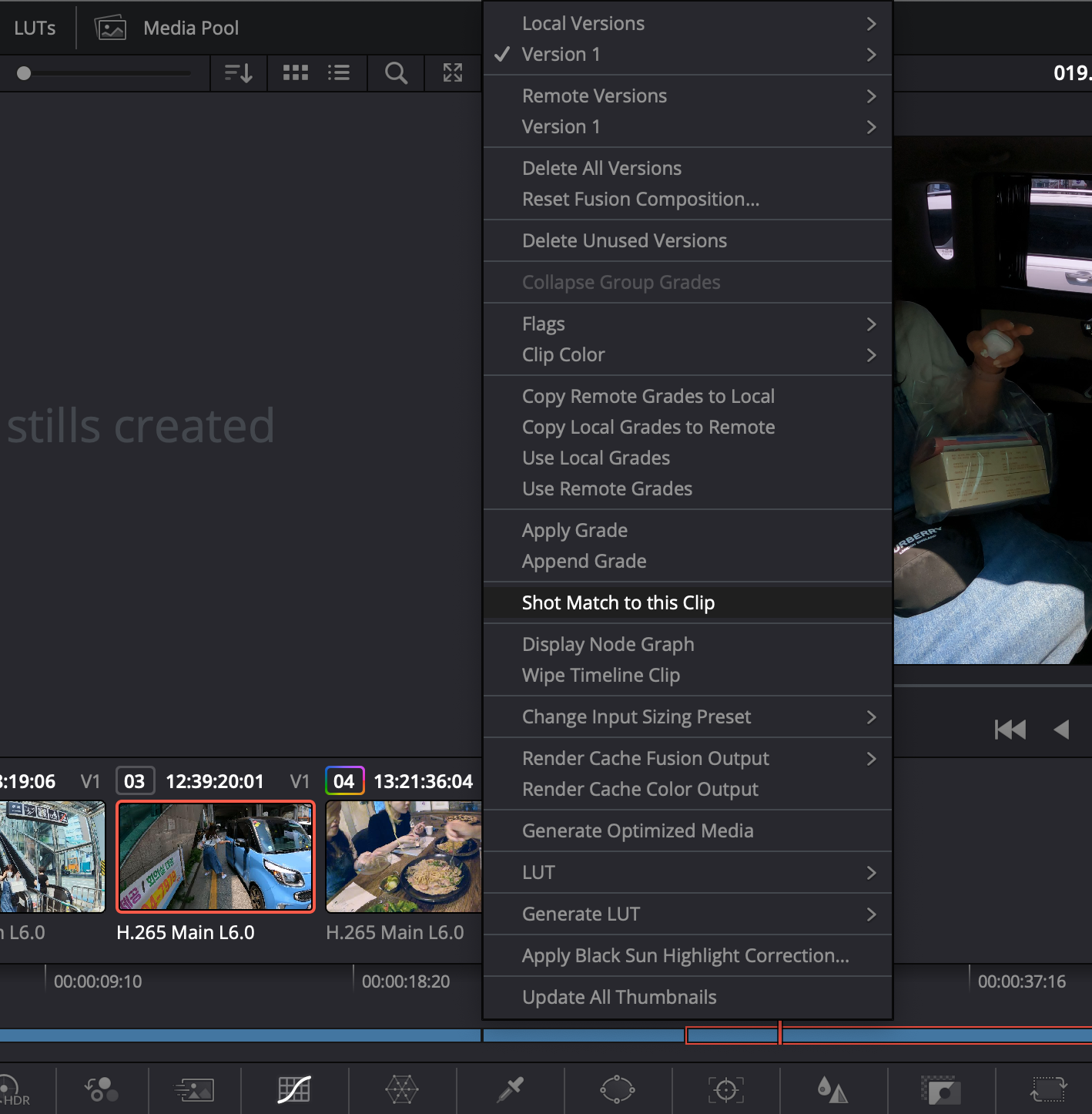 대상 클립에서 Shot Match to the Clip을 선택합니다.