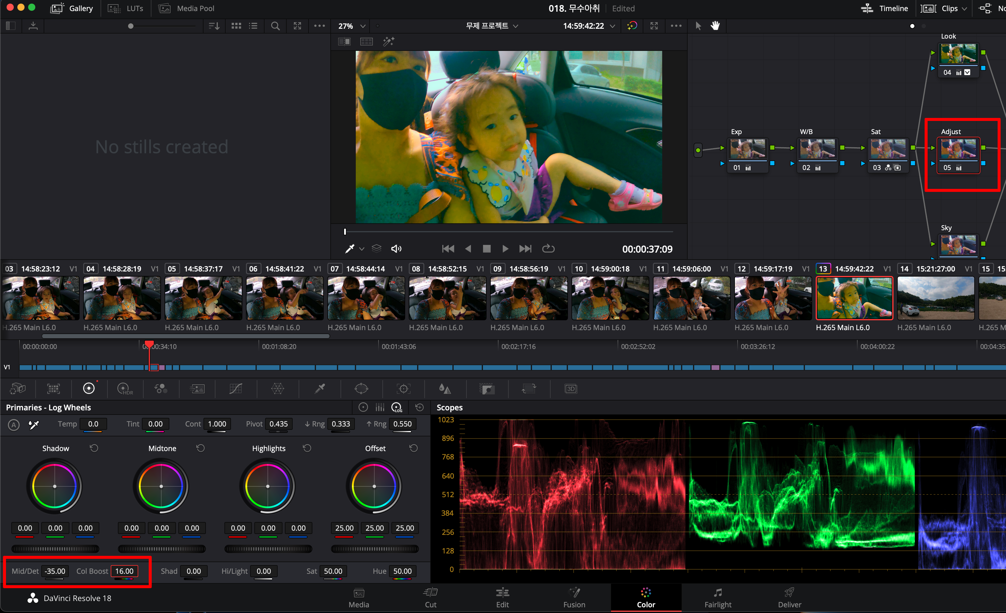 Midton Detail / Color Boost를 조정합니다.