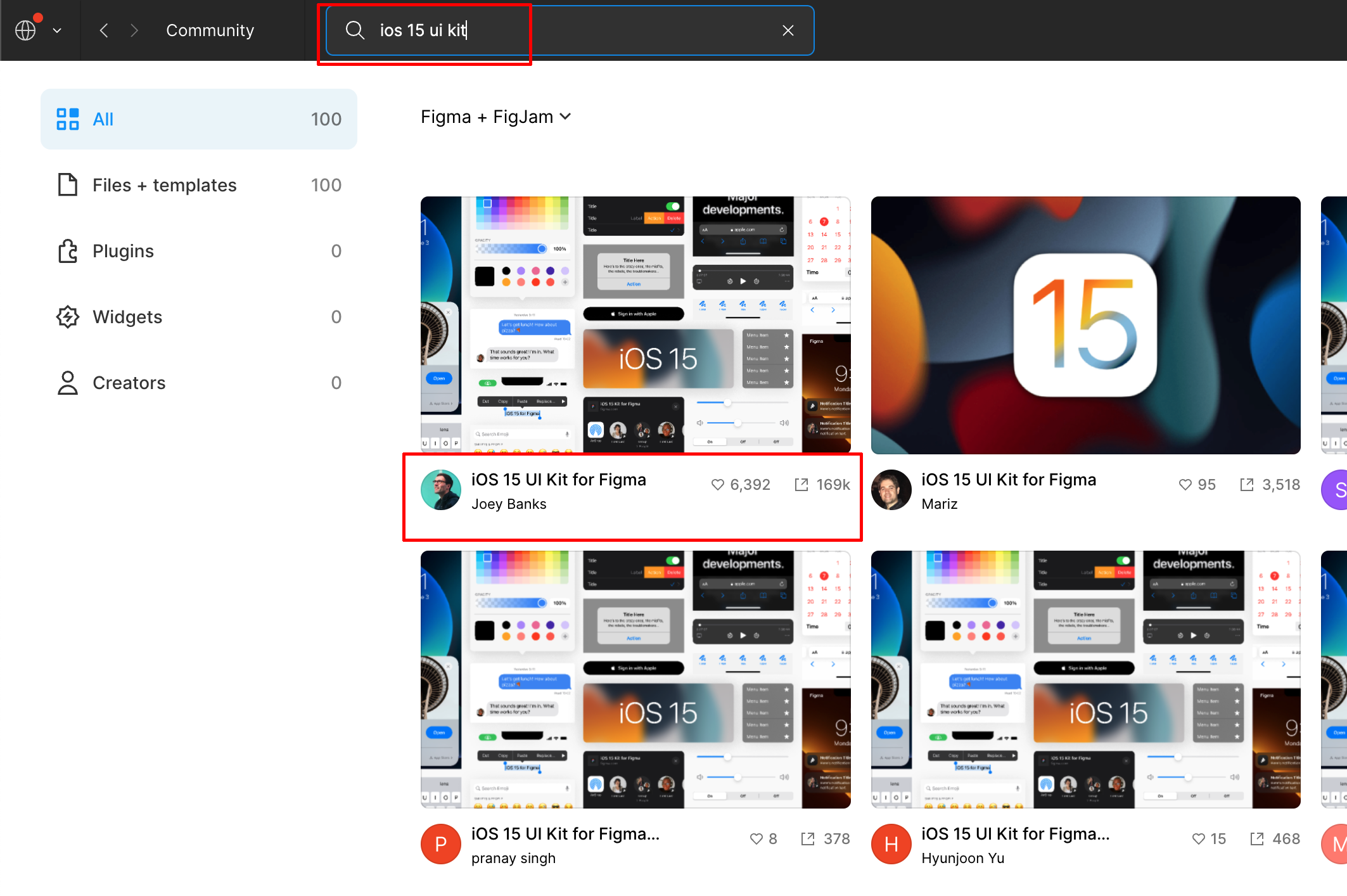 Community에서 ios 15 UI kit을 검색합니다.