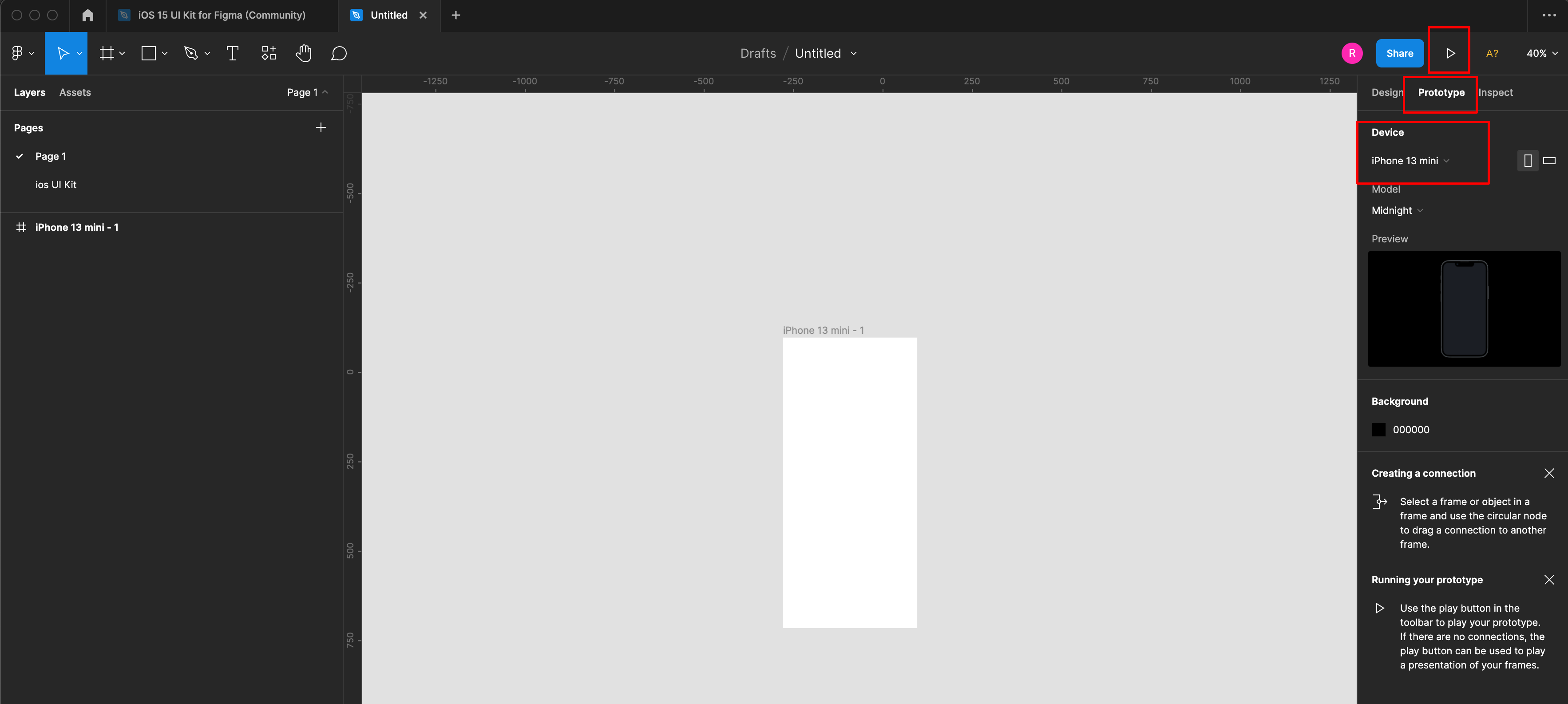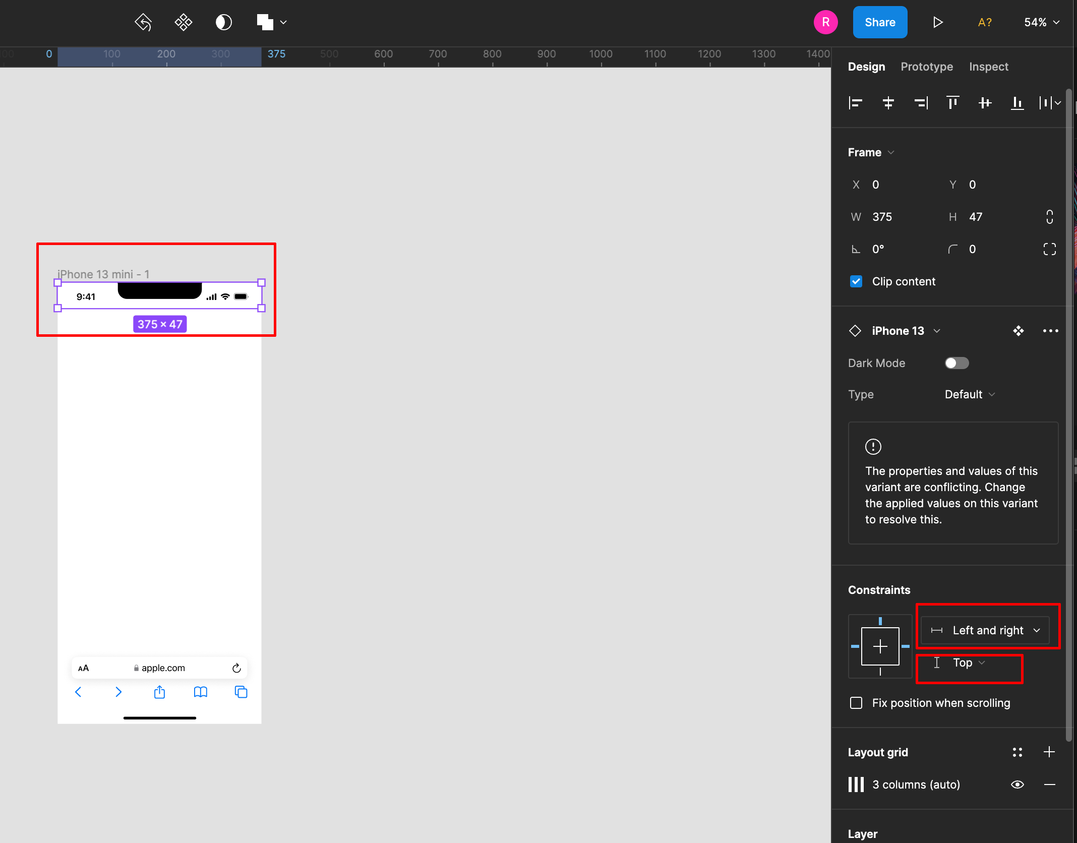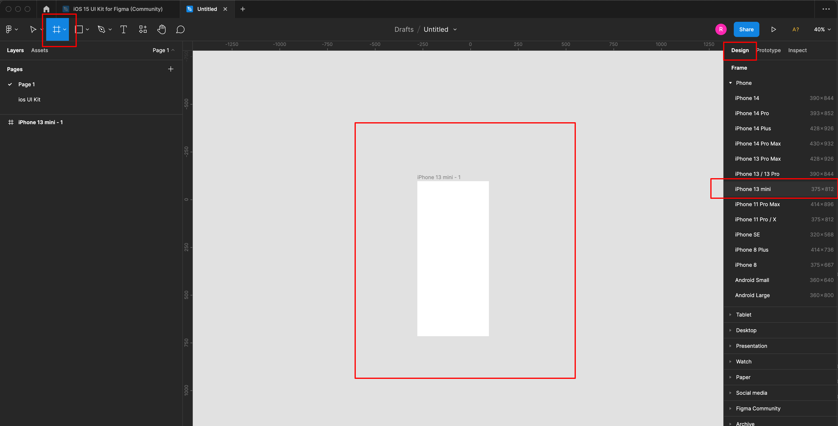 프레임에서 Design에서 iphone 사이즈를 추가합니다.