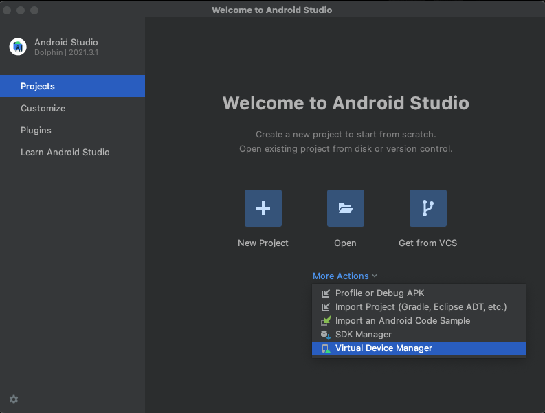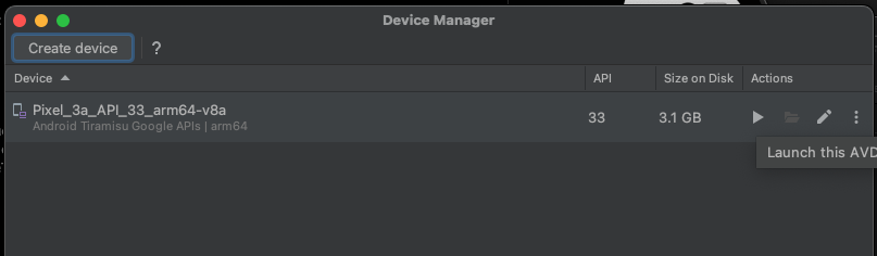 Virtual Device manager를 실행합니다.