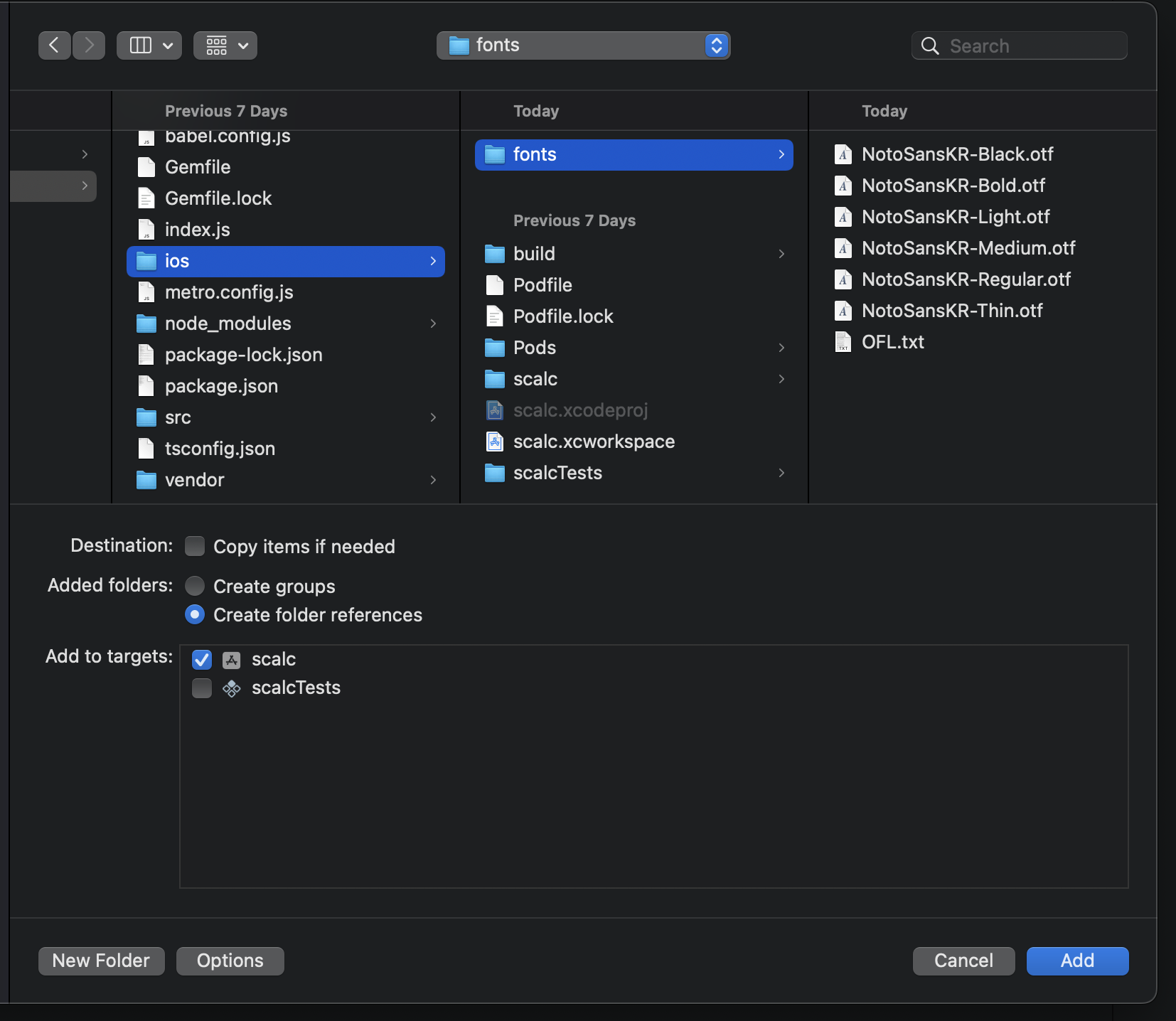 create folder reference를 선택하고 Add 합니다.