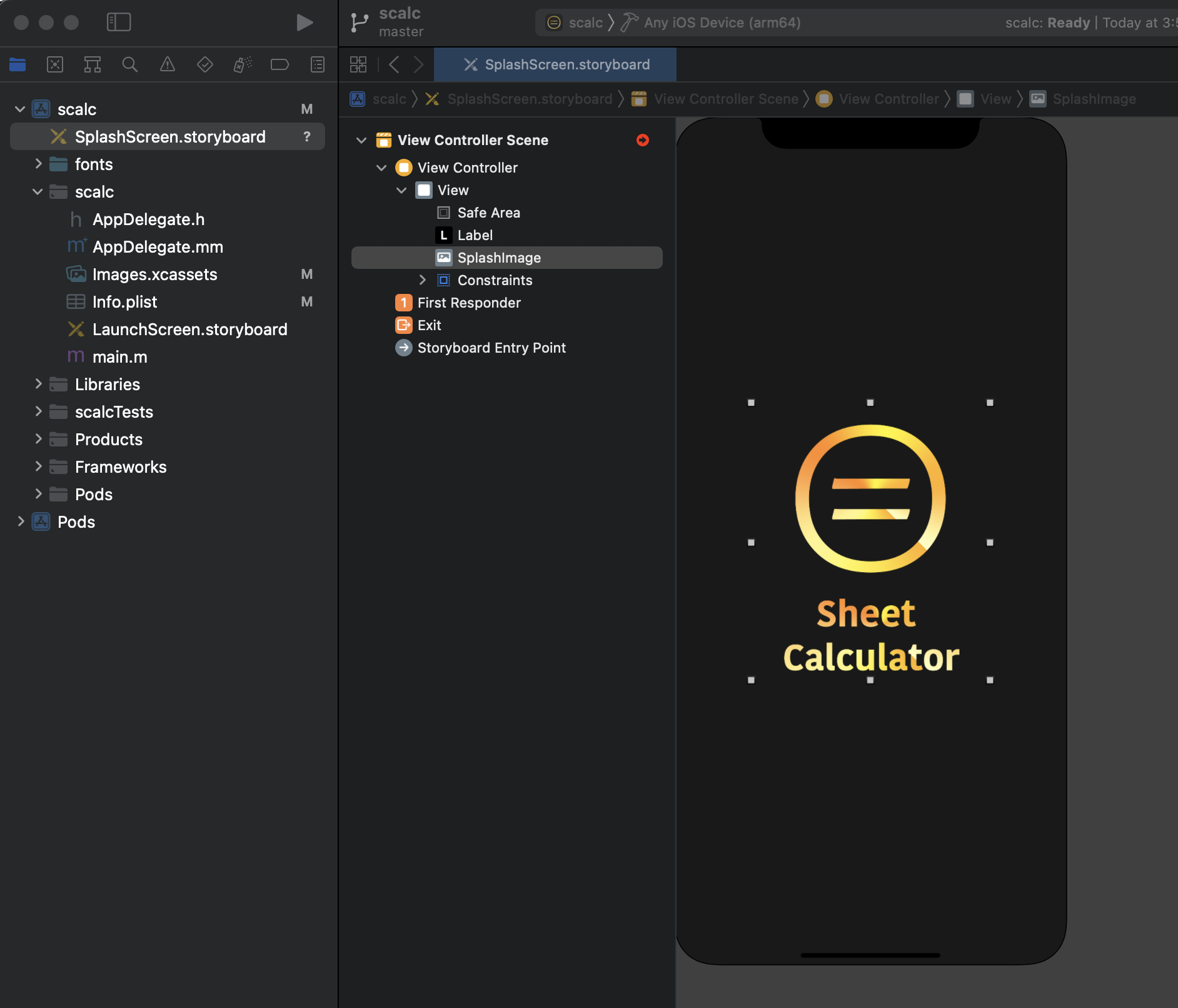 SplashScreen.storyboard를 선택합니다.