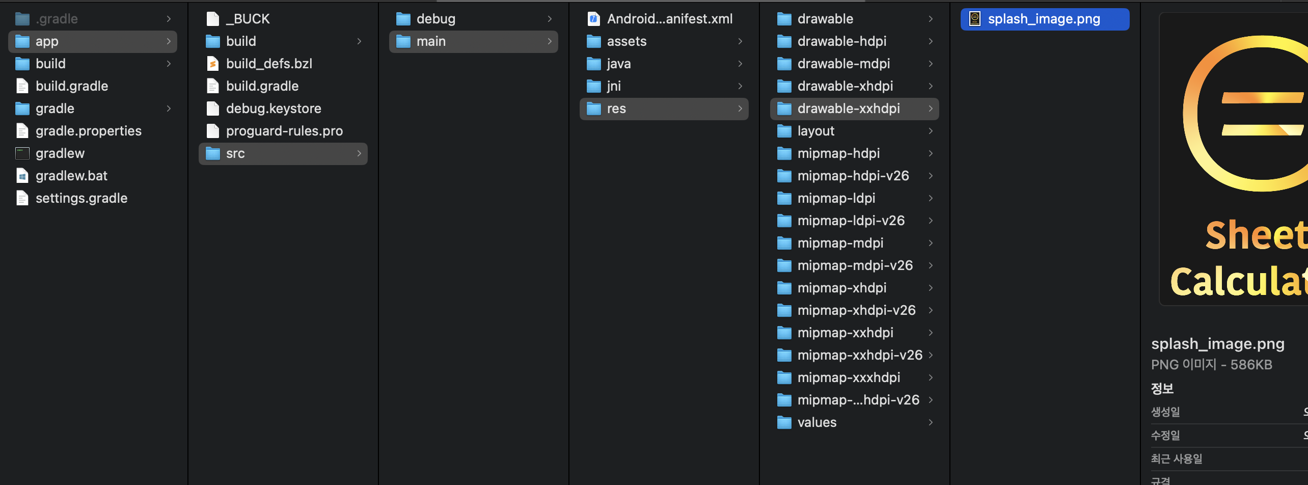 android와 ios에 사이즈별 splash 이미지가 생성되었습니다.