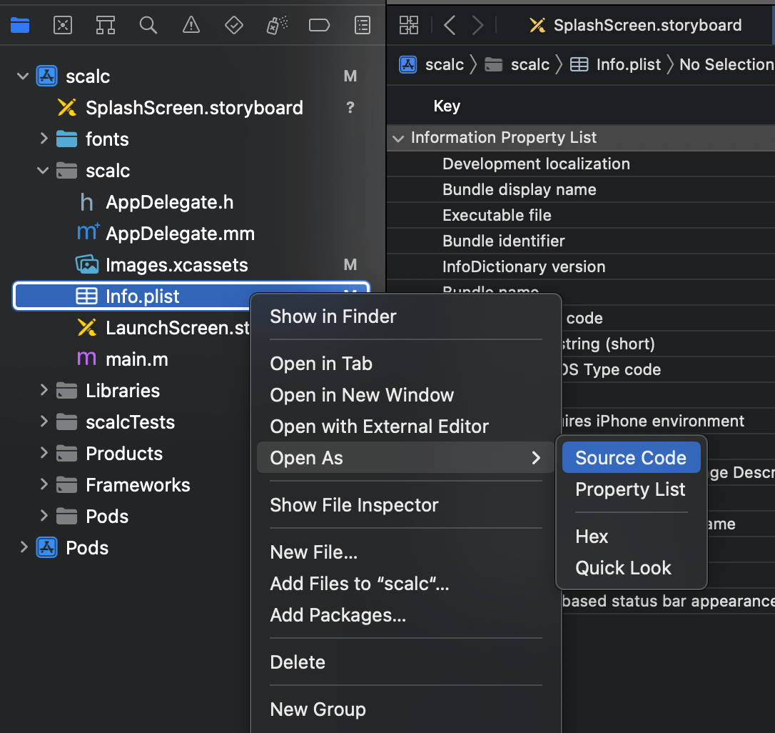 Info.plist를 Source Code로 엽니다