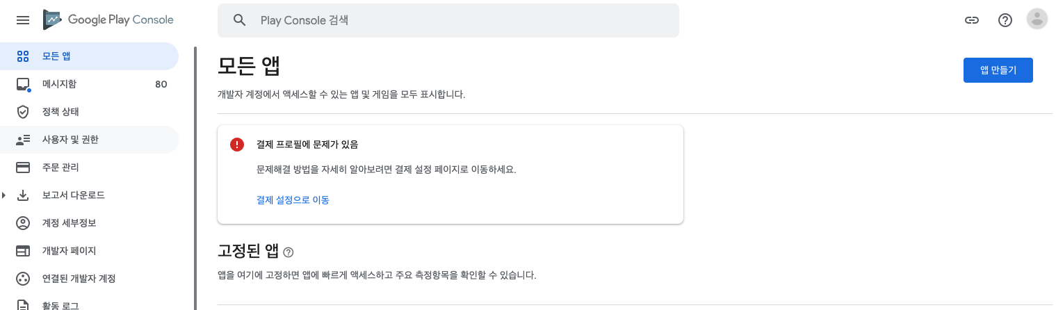 Android 개발자 등록 (등록비: $25)후 개발자 콘솔로 가세요.