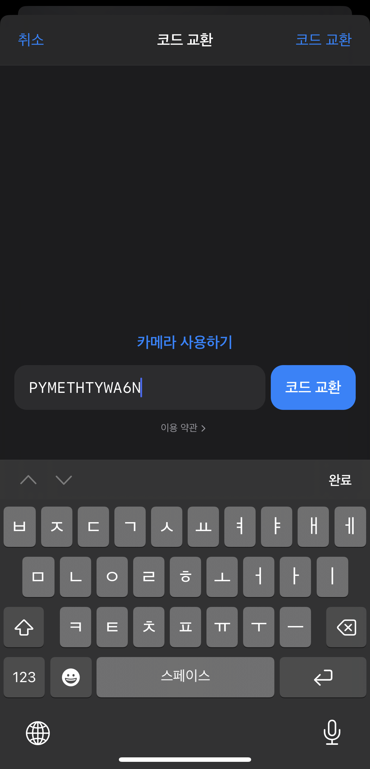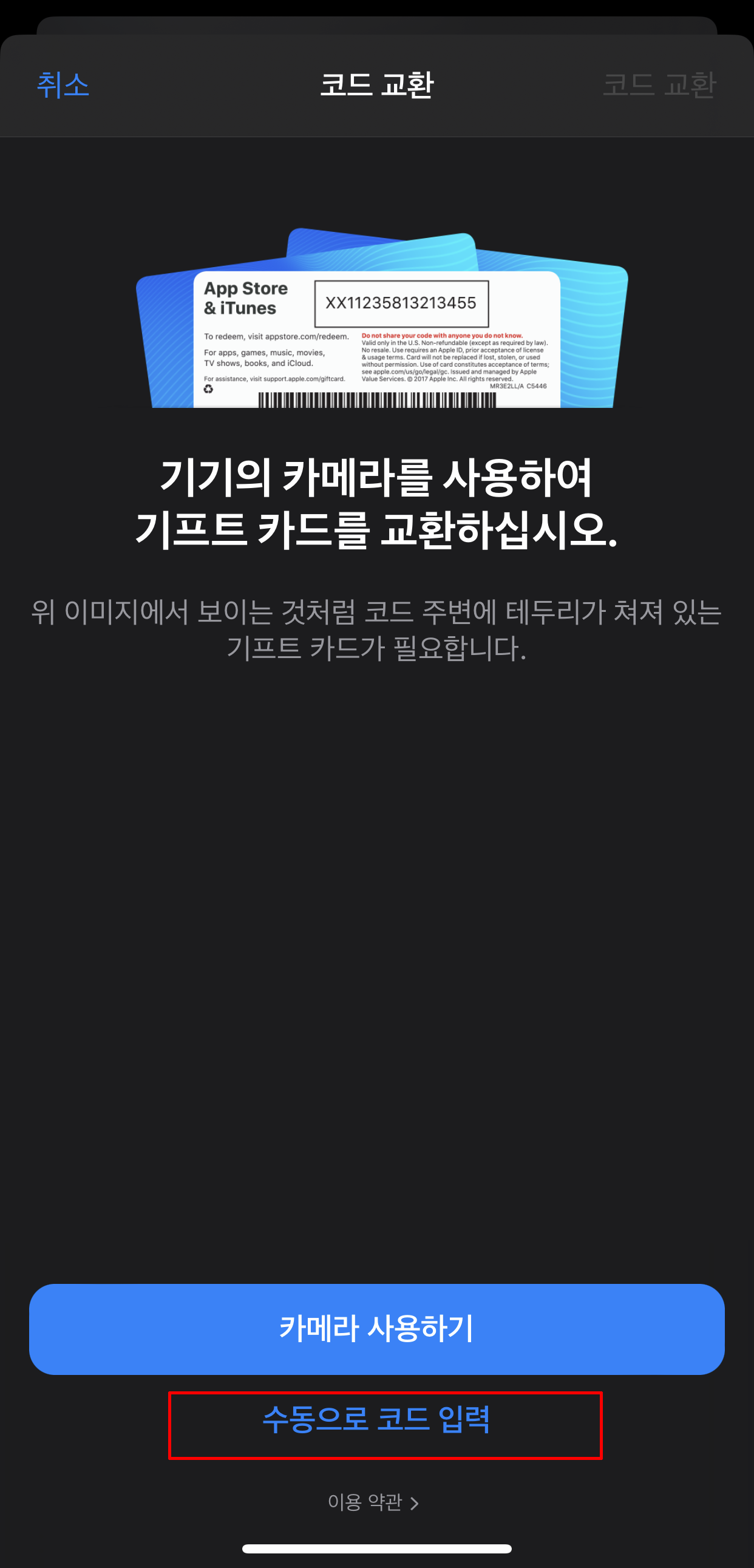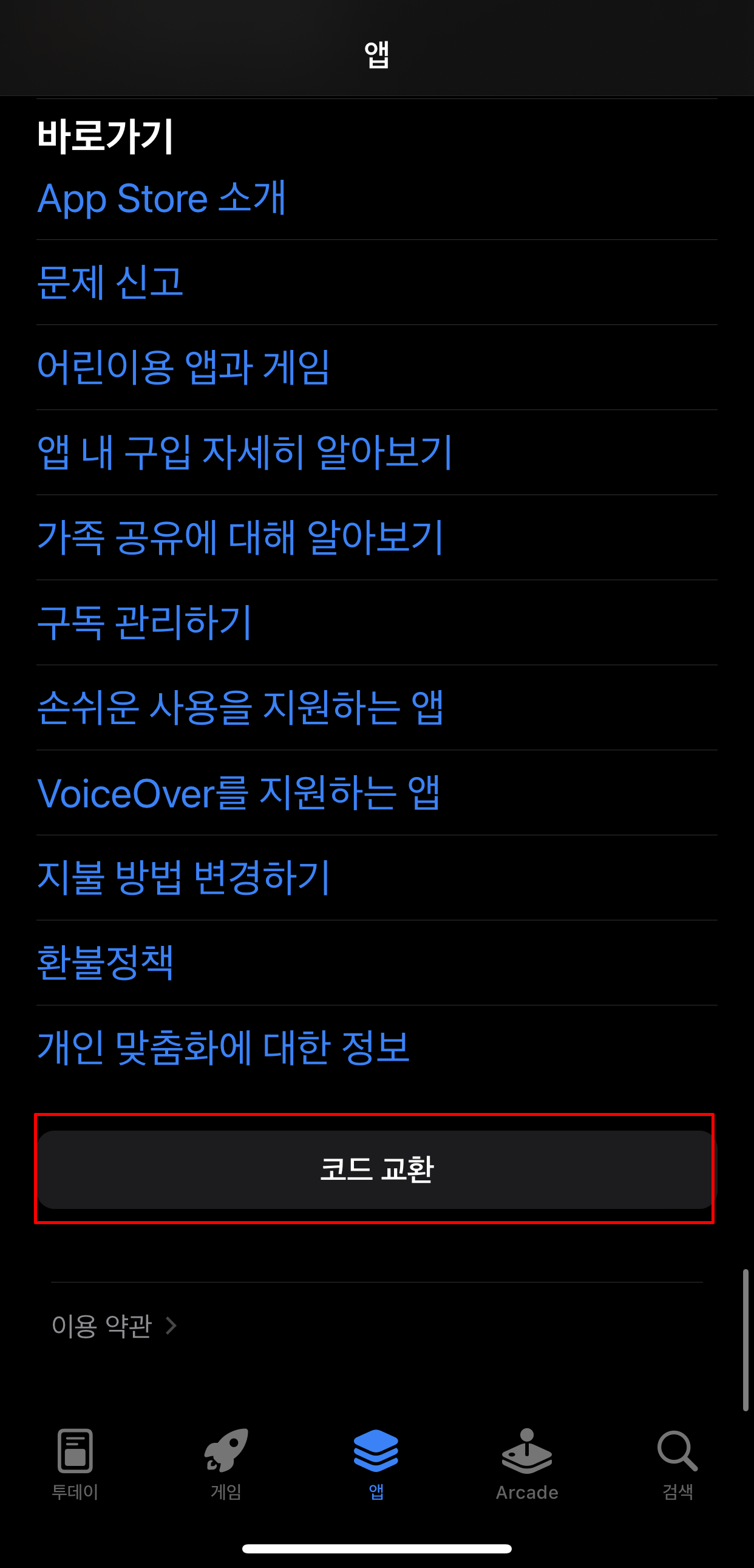 스크롤을 제일 아래로 내리고 코드 교환을 누릅니다.