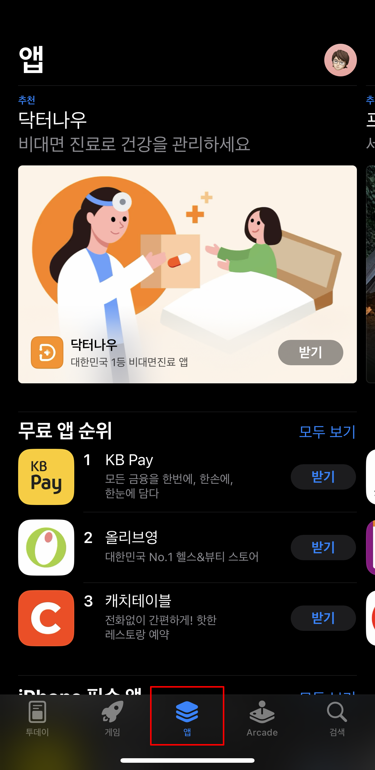 앱 스토어를 실행하고 앱 탭을 클릭합니다.