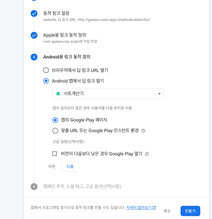 page.link 주소는 인증 절차 없이 바로 완료됩니다.
