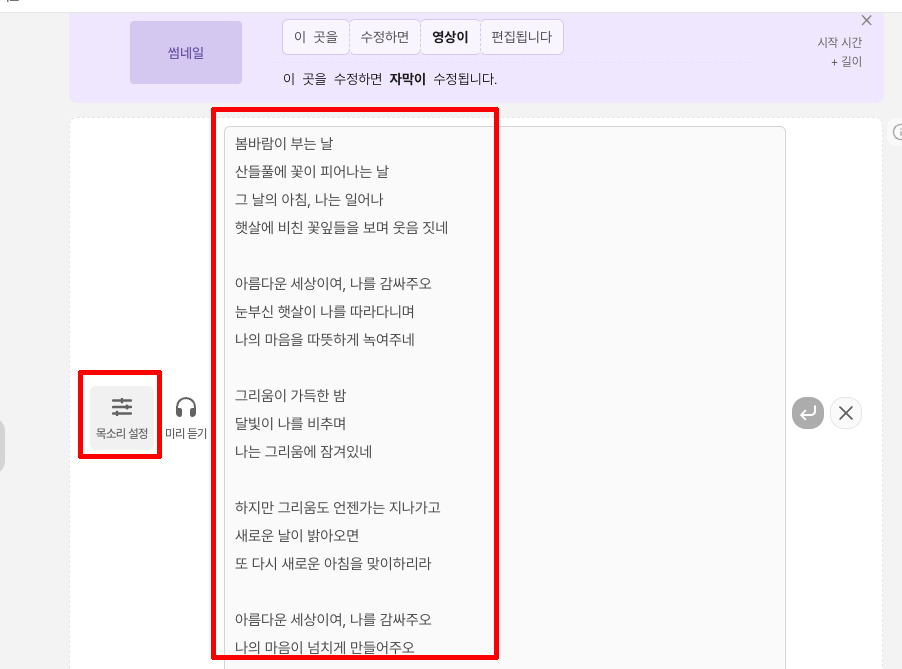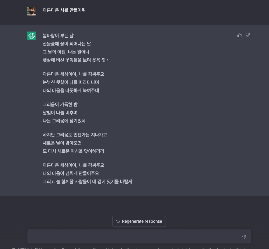 Chat GPT에서 복사한 시를 붙여넣기 하고,