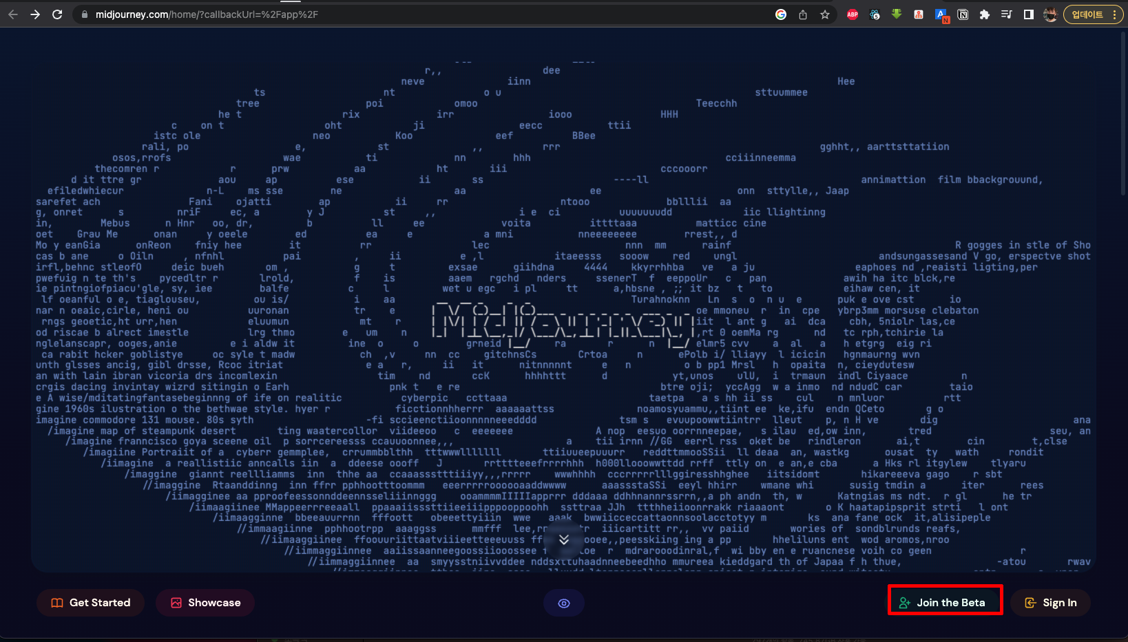미드저니 홈페이지에서 Join the Beta를 클릭합니다.