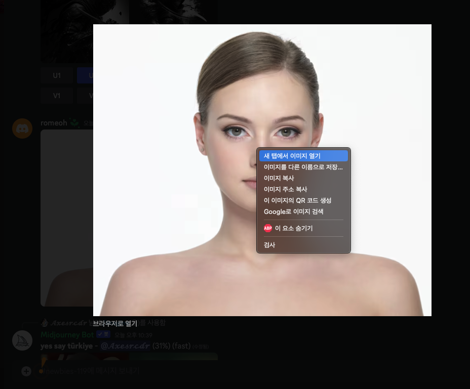 사진이 업로드 되면 업로드된 사진을 선택하고 새탭에서 열기를 누릅니다.