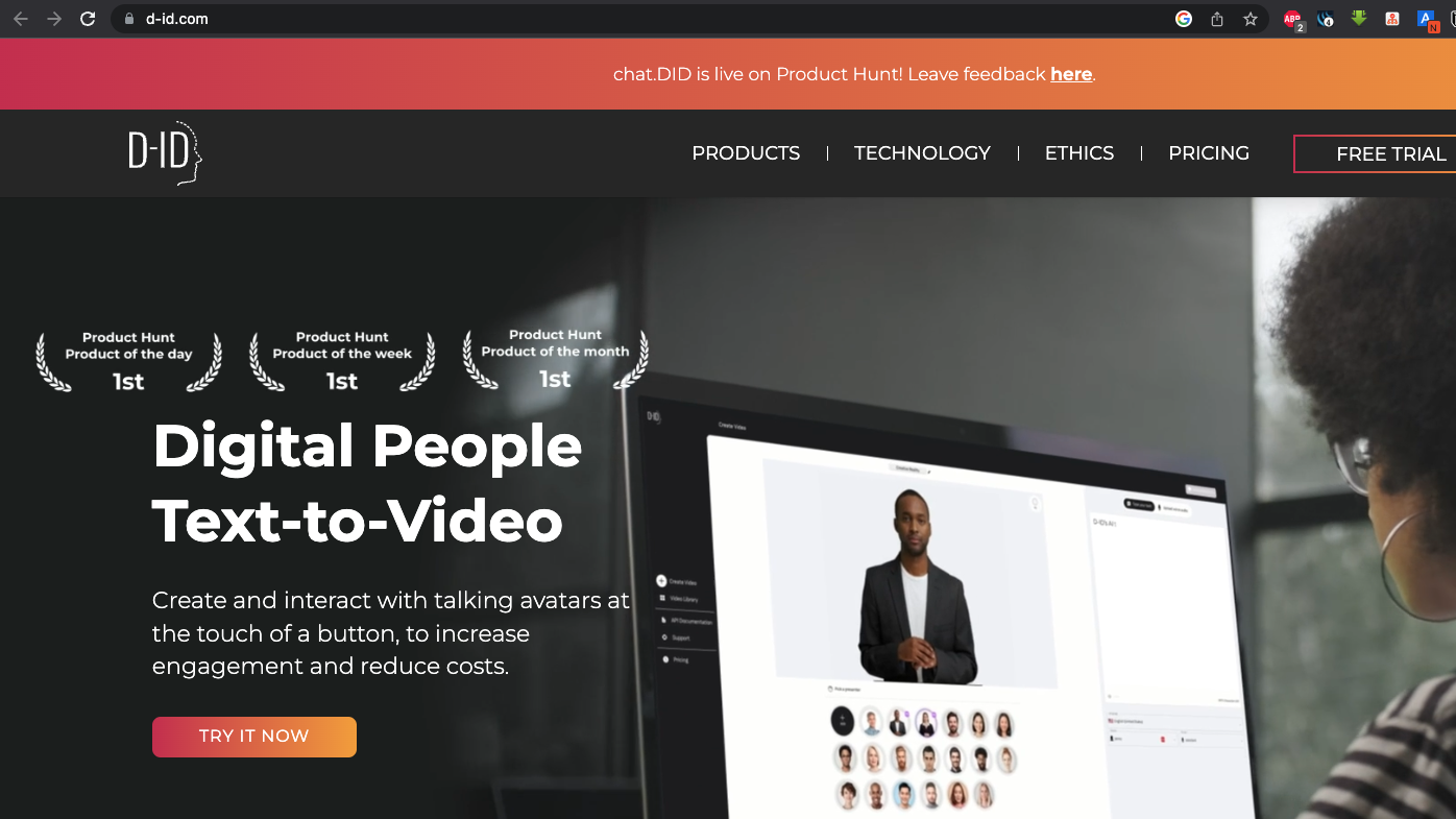 D-ID는 이미지와 음성을 립싱크에 맞춰 합성합니다.