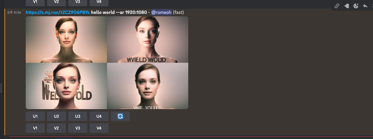 입력된 이미지에 해당하는 스타일과 사이즈(--ar) 로 이미지를 생성해 줍니다.