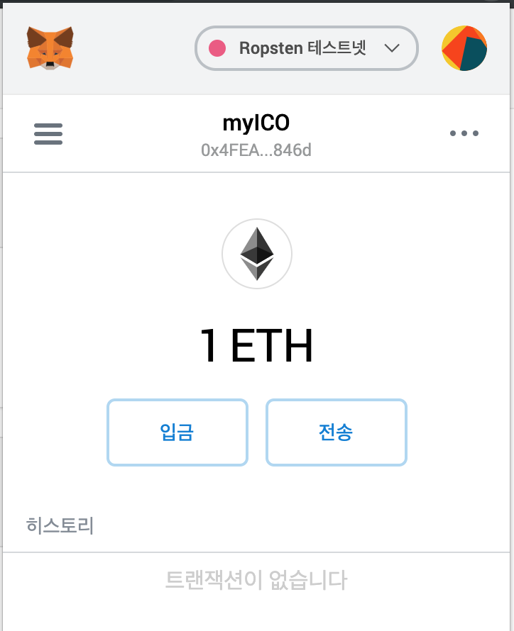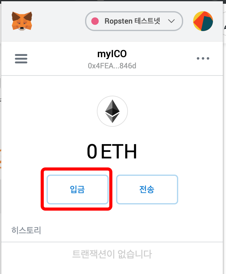 이제 이더리움 실제 코인이 아닌 테스트 코인을 저장할 수 있습니다.