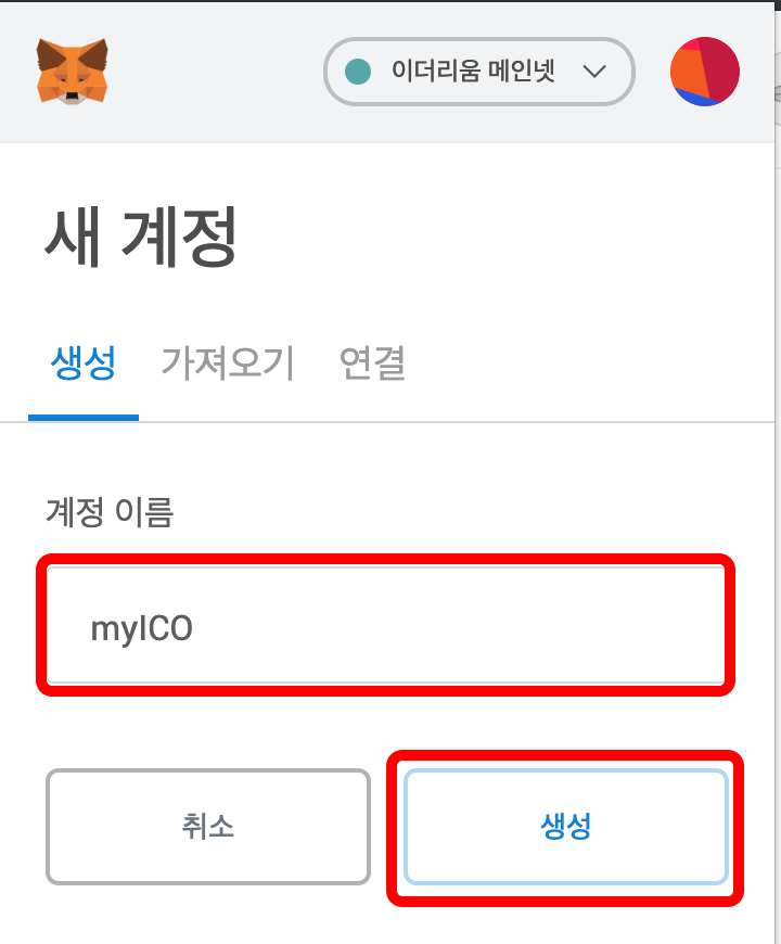 계정이름을 입력하고 생성합니다.